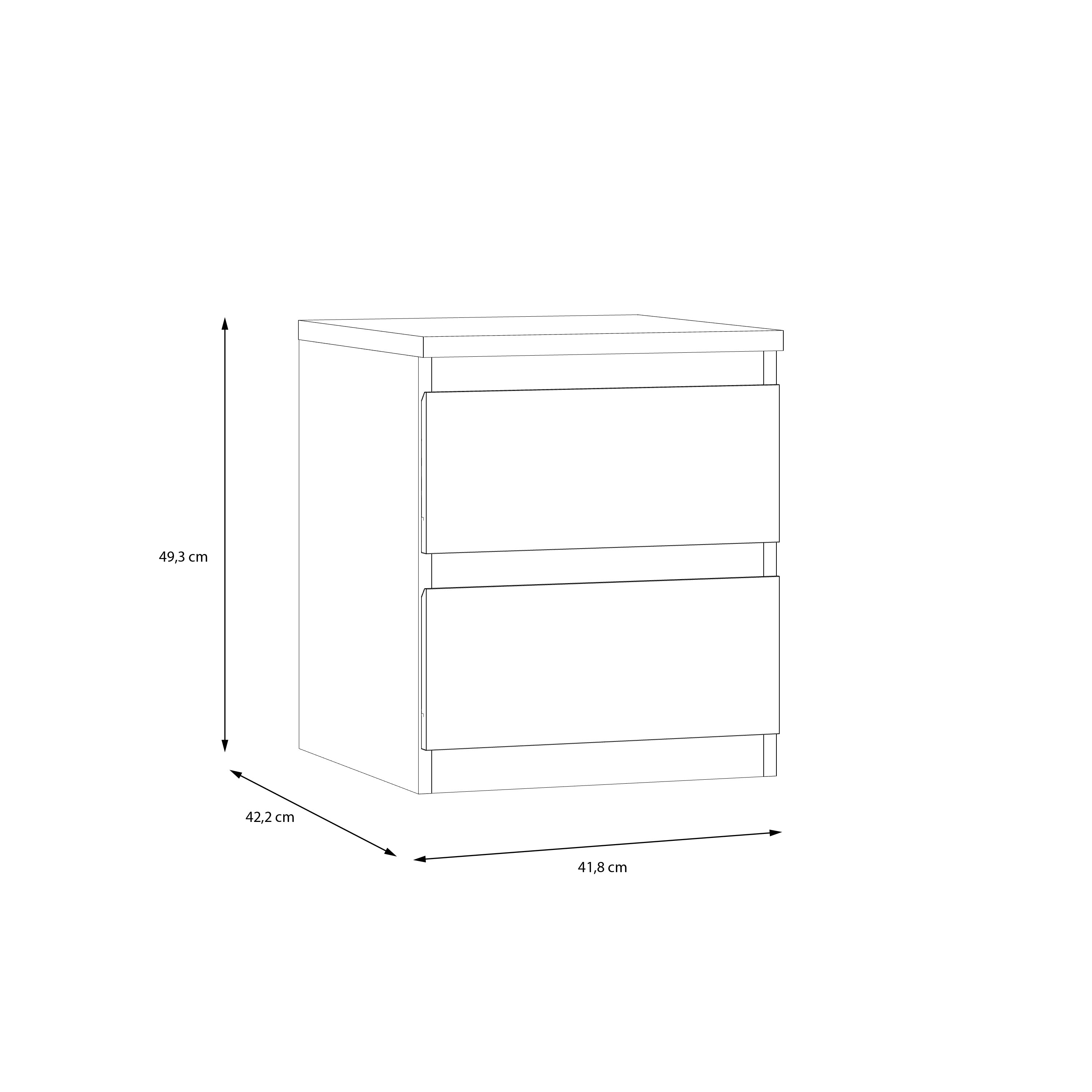 - Dimensions: Measuring Width 42cm, Height 49cm, and Depth 42cm, this bedside table is perfectly sized for most bedrooms, providing useful storage without taking up excessive space.