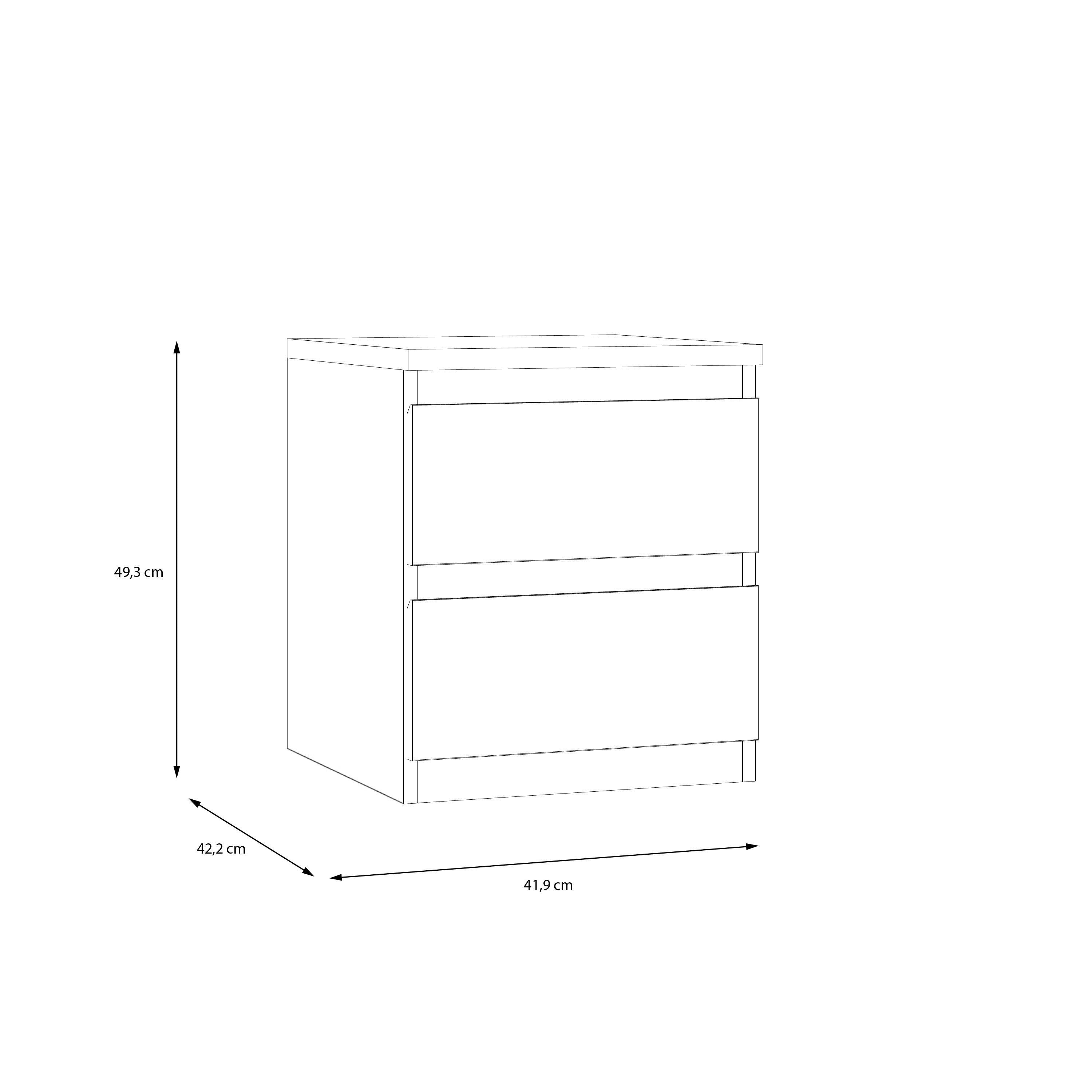 - Dimensions: Measuring Width 42cm, Height 49cm, and Depth 42cm, this bedside table is perfectly sized for most bedrooms, providing useful storage without taking up excessive space.
