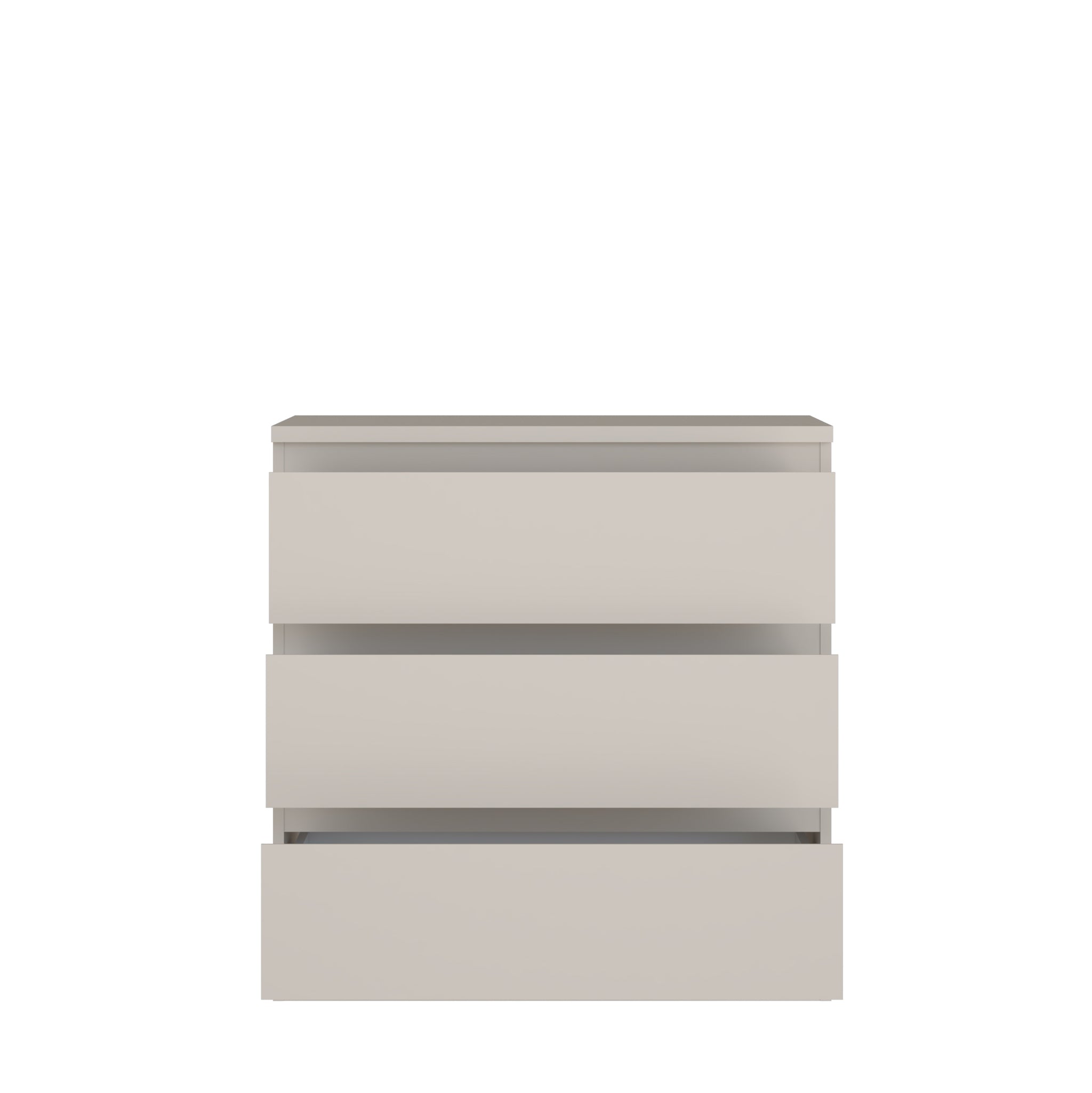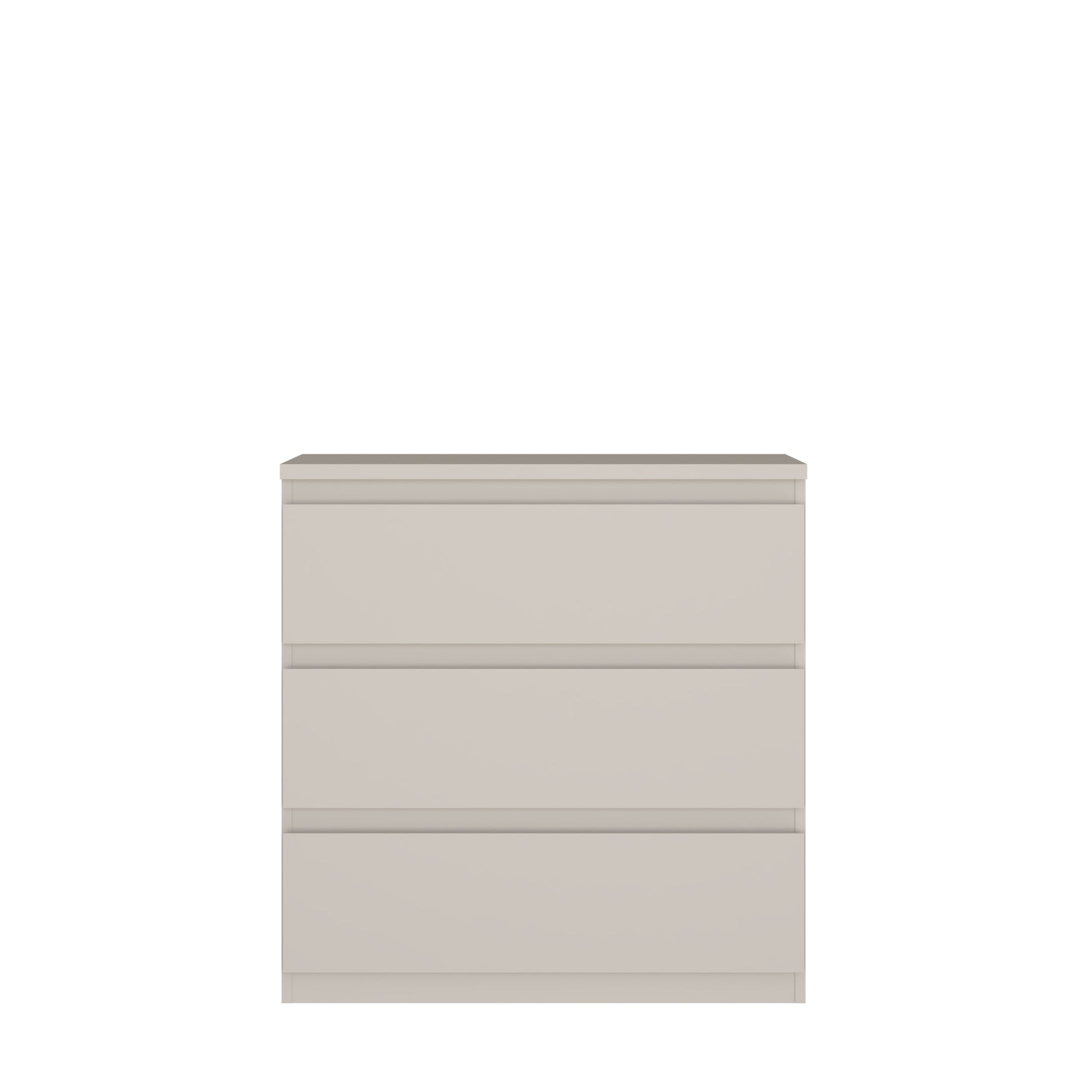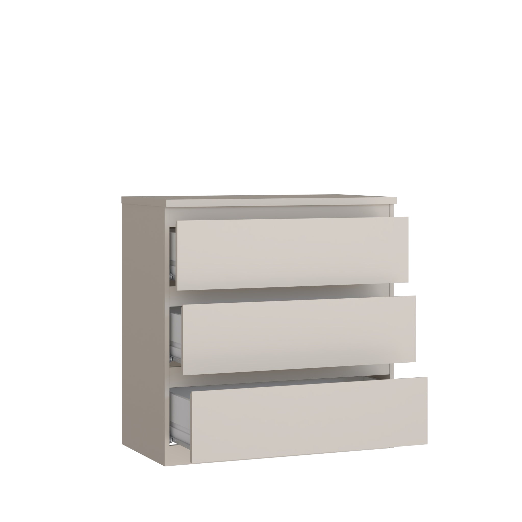 Keep your bedroom neat and organised with the sleek and spacious Alaska 3 Drawer Chest of Drawers. Finished in Cashmere, this chest offers a modern and minimalist storage solution for your clothes, bedding, and other essentials. Featuring three generously sized drawers, it provides ample space to keep your belongings tidy and out of sight. The clean, handleless design enhances its contemporary aesthetic, making it a versatile addition to any bedroom.