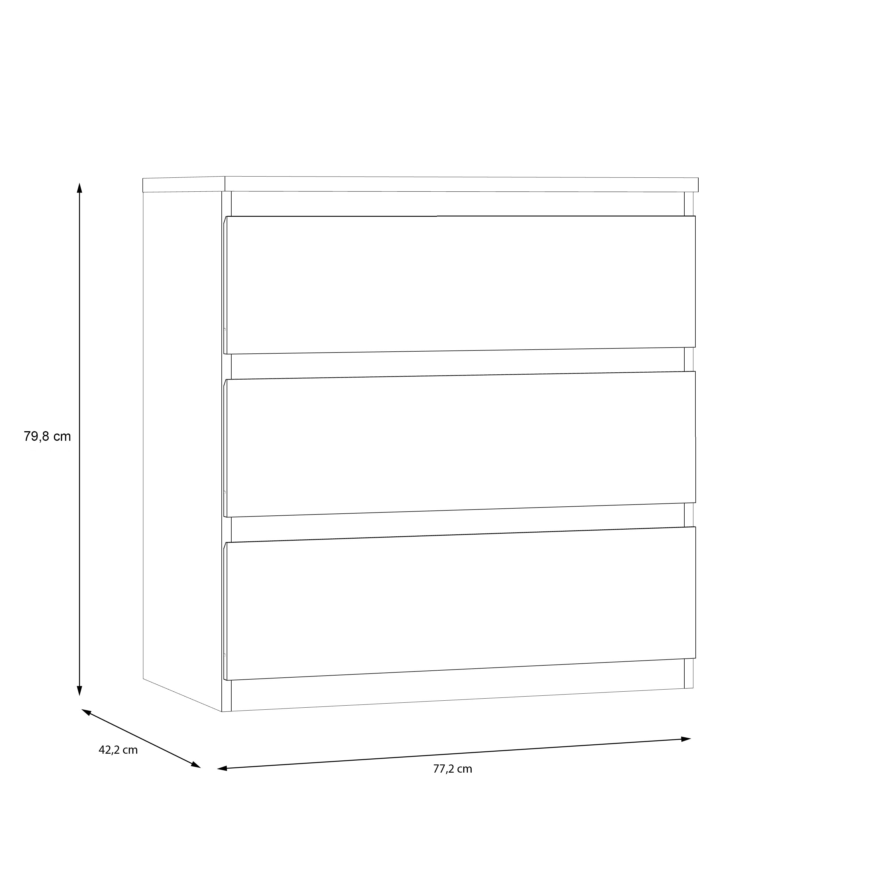 - Dimensions: Measuring Width 77cm, Height 80cm, and Depth 42cm, this chest of drawers offers a practical storage solution without taking up excessive floor space in your bedroom.