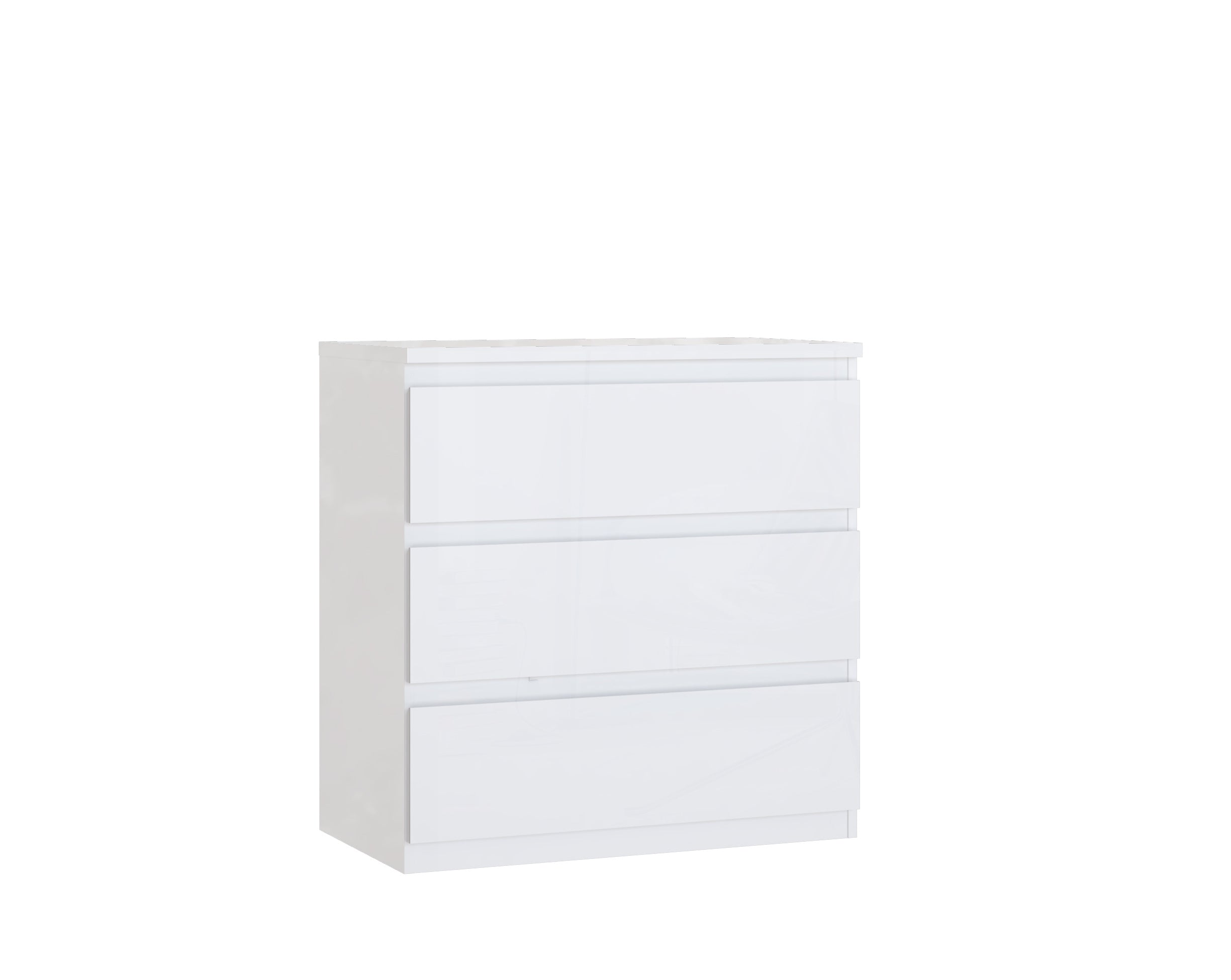 Keep your bedroom neat and organised with the sleek and spacious Alaska 3 Drawer Chest of Drawers. Finished in White Gloss, this chest offers a modern and minimalist storage solution for your clothes, bedding, and other essentials. Featuring three generously sized drawers, it provides ample space to keep your belongings tidy and out of sight. The clean, handleless design enhances its contemporary aesthetic, making it a versatile addition to any bedroom.