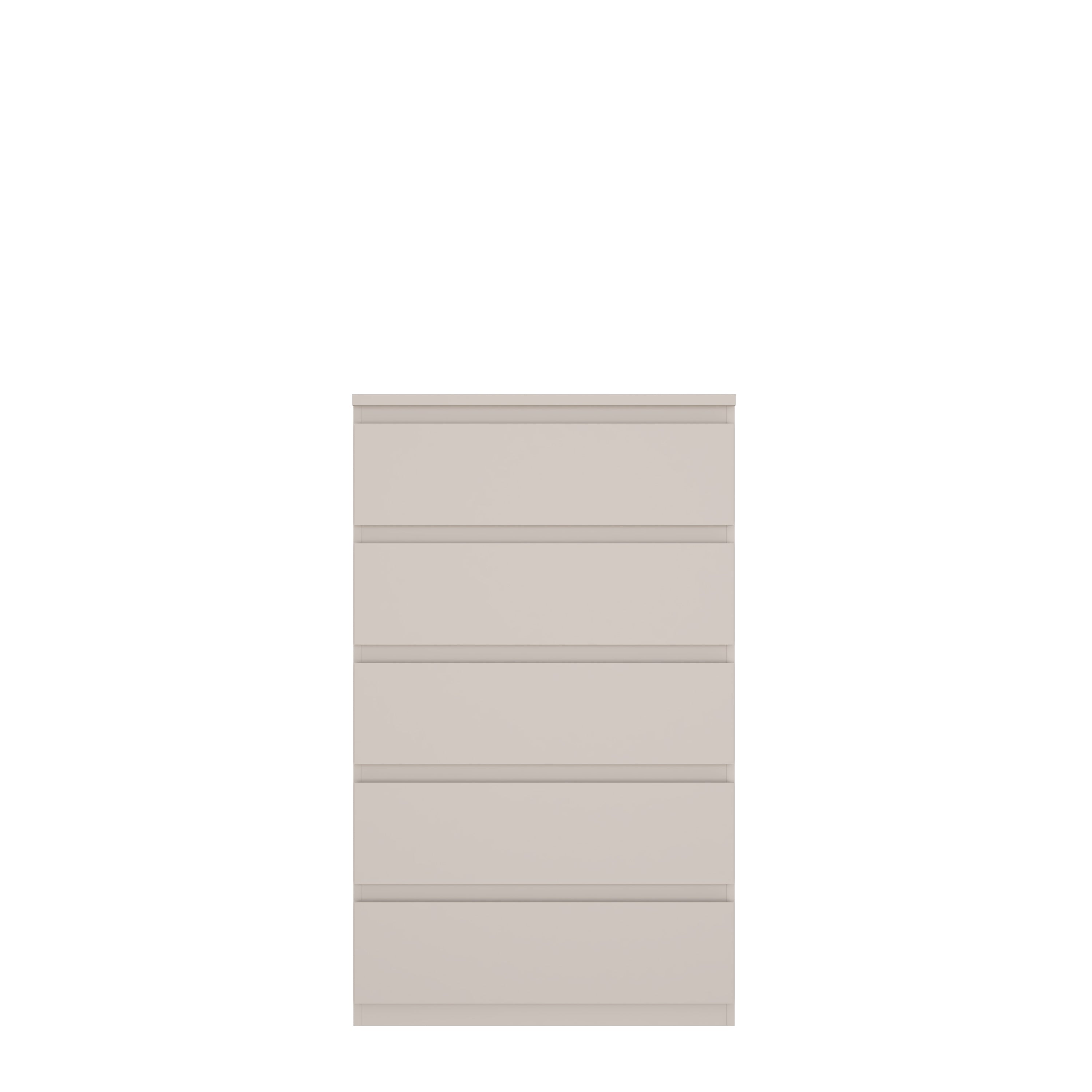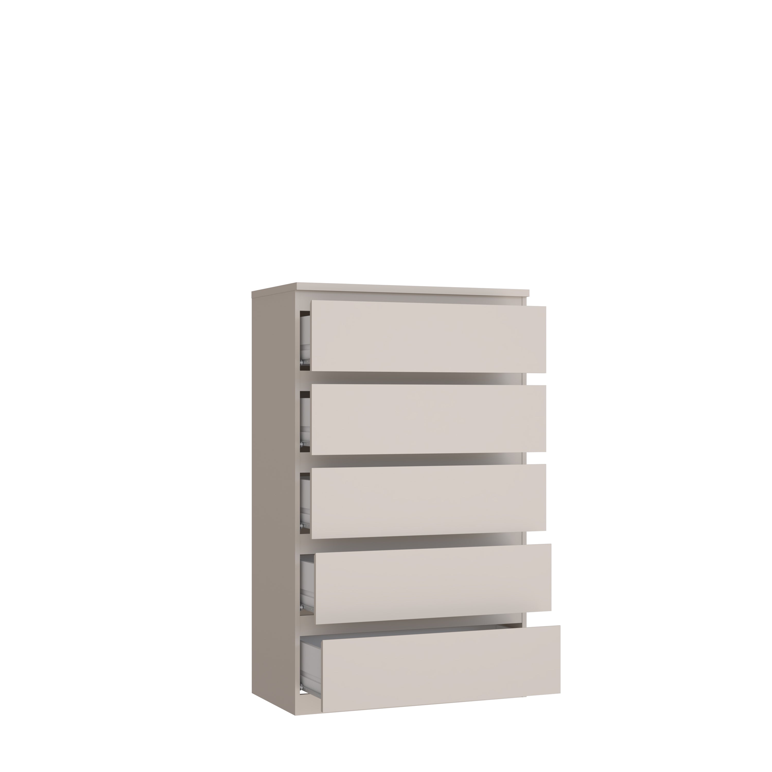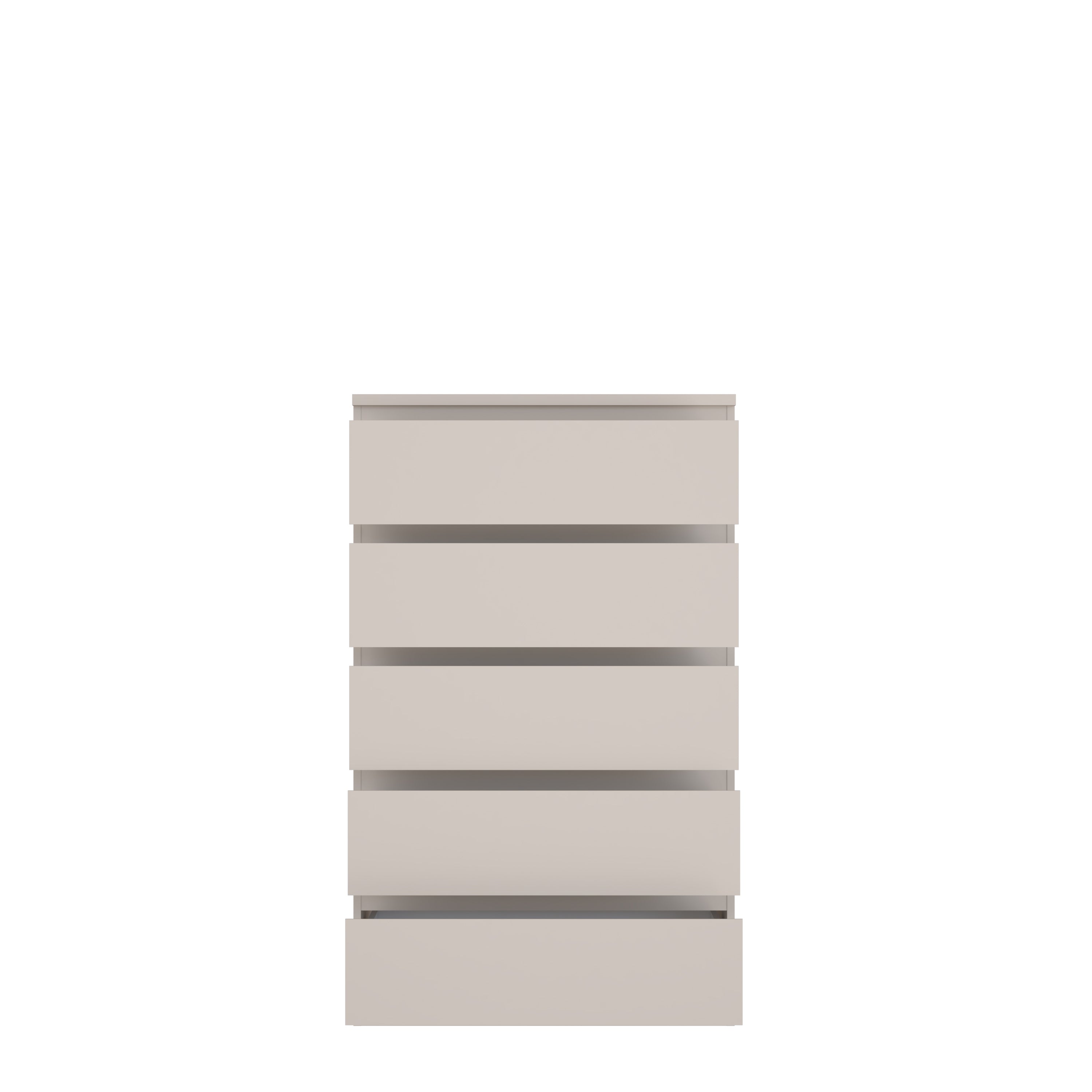 Maximise your bedroom storage with the stylish and spacious Alaska 5 Drawer Wide Chest of Drawers. Finished in Cashmere, this chest offers ample room for organising your clothes, bedding, and other essentials. Featuring five generously sized, wide drawers, it provides excellent storage capacity while maintaining a sleek and minimalist aesthetic, perfect for any home. The handleless design further enhances its clean lines and contemporary appeal.