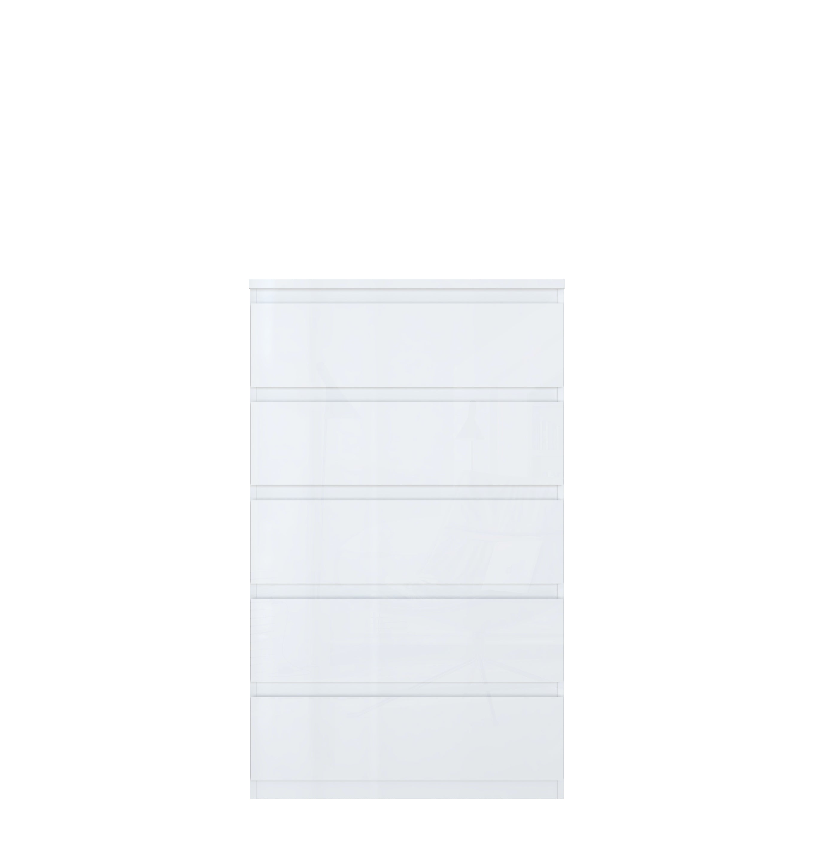 Maximise your bedroom storage with the stylish and spacious Alaska 5 Drawer Wide Chest of Drawers. Finished in a clean and contemporary White Gloss, this chest offers ample room for organising your clothes, bedding, and other essentials. Featuring five generously sized, wide drawers, it provides excellent storage capacity while maintaining a sleek and minimalist aesthetic, perfect for any home. The handleless design further enhances its clean lines and contemporary appeal.