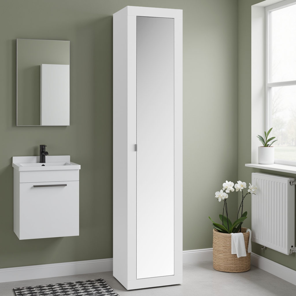 Selene 1 Door White Gloss Tall Mirrored Bathroom Storage Cupboard