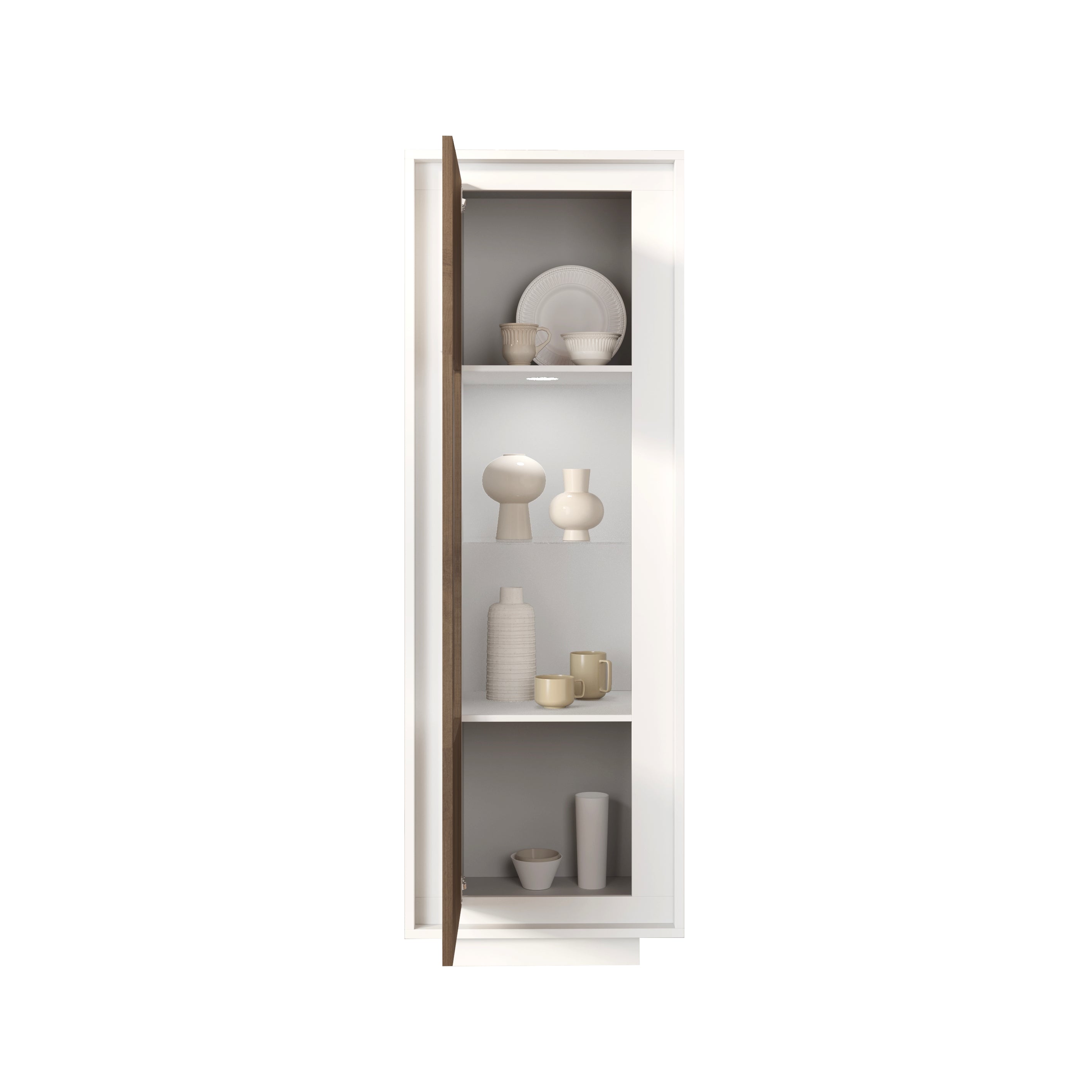Berlin 1 Door 67cm Matt White and Mercure Oak Glass Display Cabinet