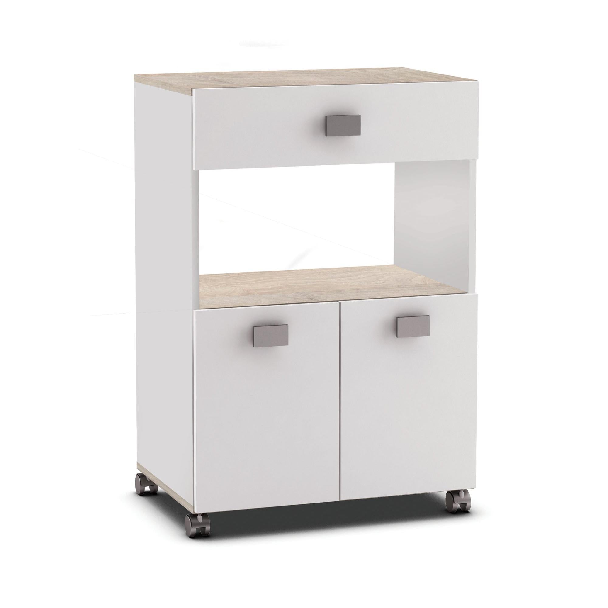 Owen Kitchen Pantry Trolley with Microwave Shelf - Matt White & Acacia Oak