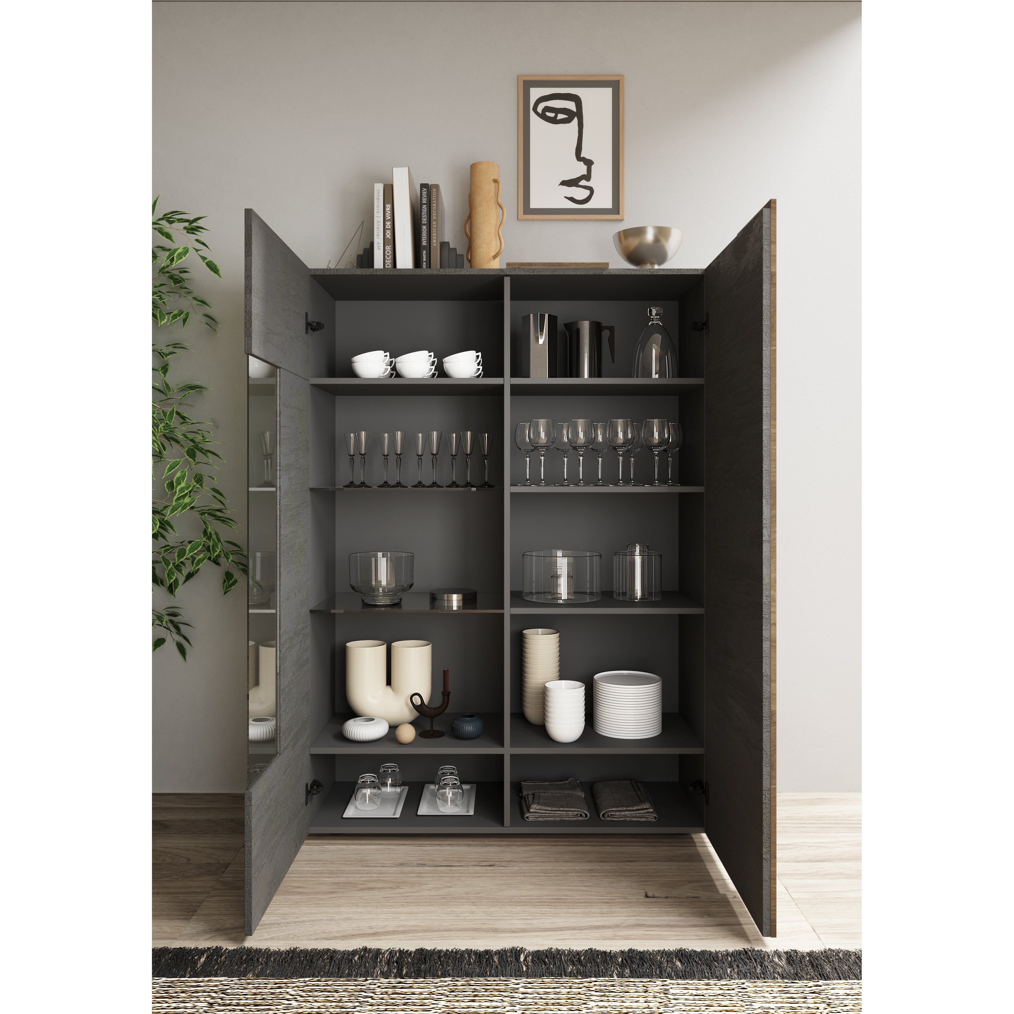 Irresistible Italian charm brings the Seville 2 Door Grey and Mercure Oak Display Cabinet, a complete feature for your existing interior. Curated to display your prized possessions, Seville was designed with a glass insert for this very reason and manufactured to create a stylish appearance of grey and Mercure Oak, a combination that works effortlessly together. Let’s not forget the storage potential this display cabinet possesses. Soft close functioning doors open to reveal shelving beyond your imagination, so now you have all the storage space you need. Seville is ultra-modern!