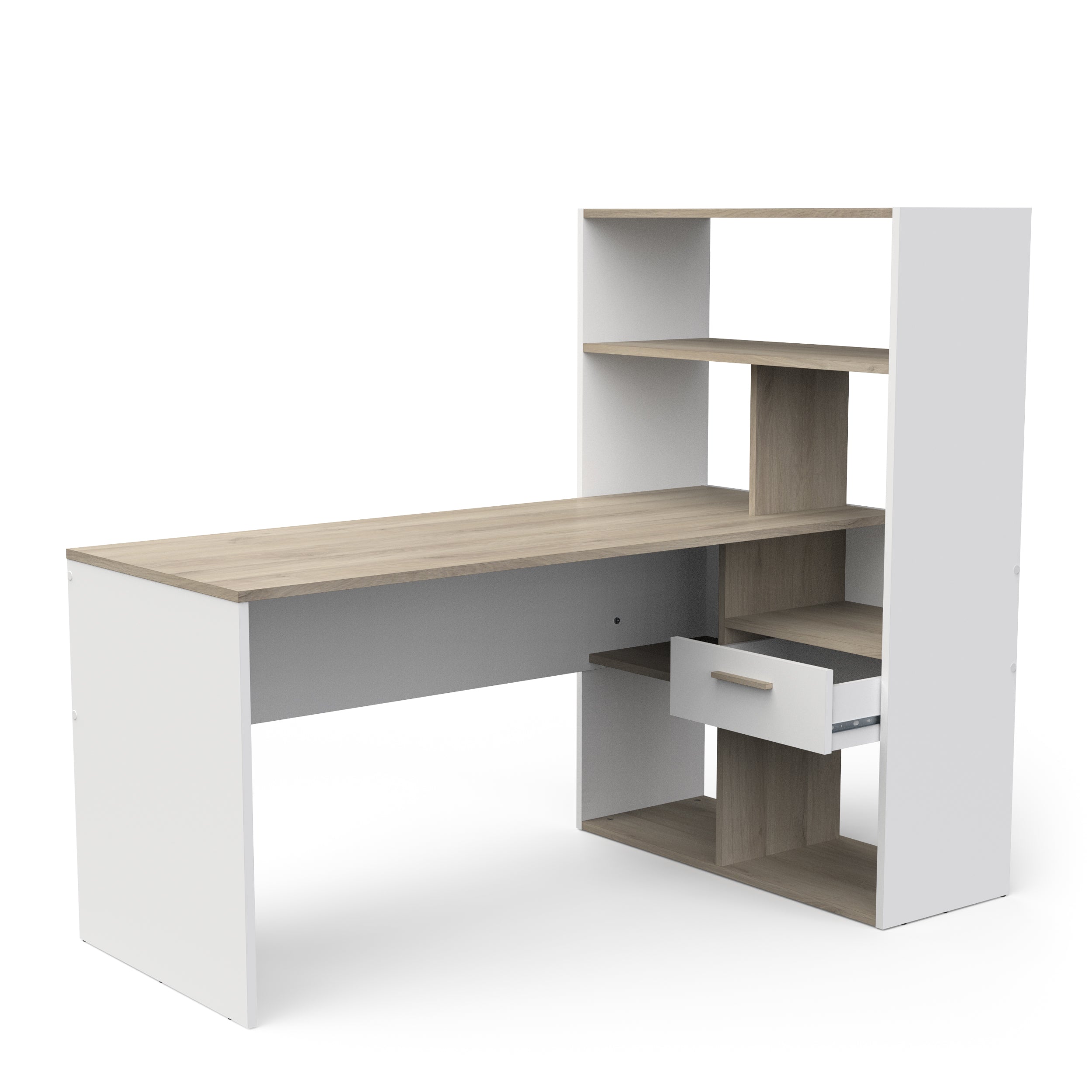 Faro White and Oak Corner Office Desk with Bookcase