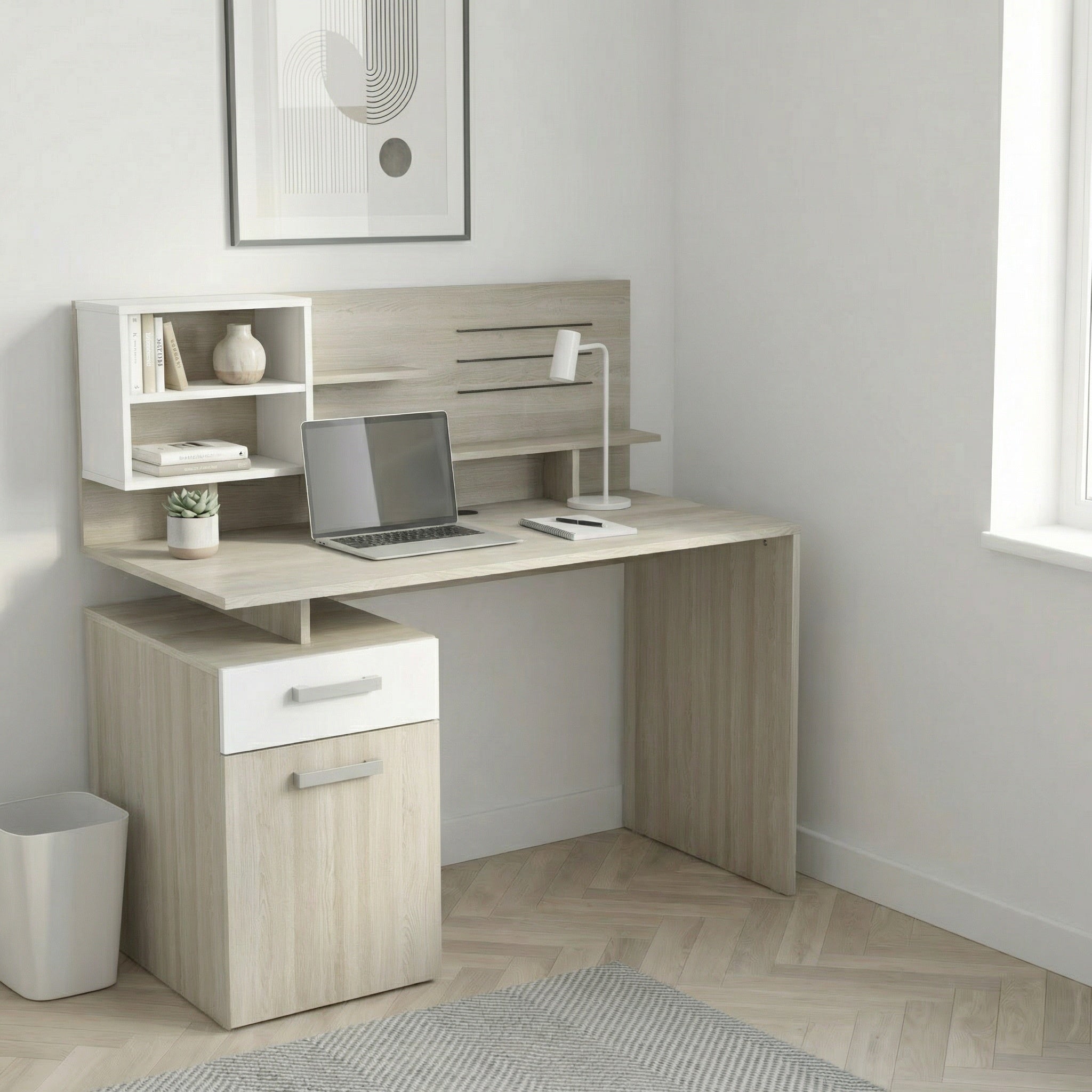 Jade 1 Door 1 Drawer Matt White and Shannon Oak Office Desk