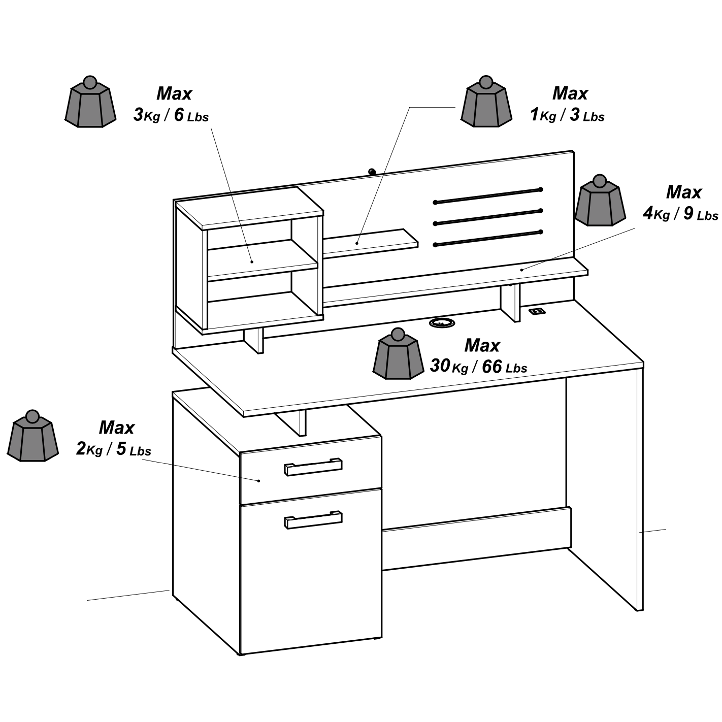 Offering the perfect workspace for those late-night study sessions is the Jade 1 Door 1 Drawer Matt White and Shannon Oak Office Desk, effortlessly complimenting your home office decor. Creating an inviting atmosphere for assignment deadlines, important work meetings and more as the Jade Desk comes equipped with ample storage space in 1 Door and 1 Drawer. Supported by overhead shelving for easy access to files and stationary, elastic bands allow you to pin your weekly calendar duties. Finished in a stylish frame with a contrasting ensemble of Oak and Matt White, this office desk comes as a functional and stylish statement in any environment