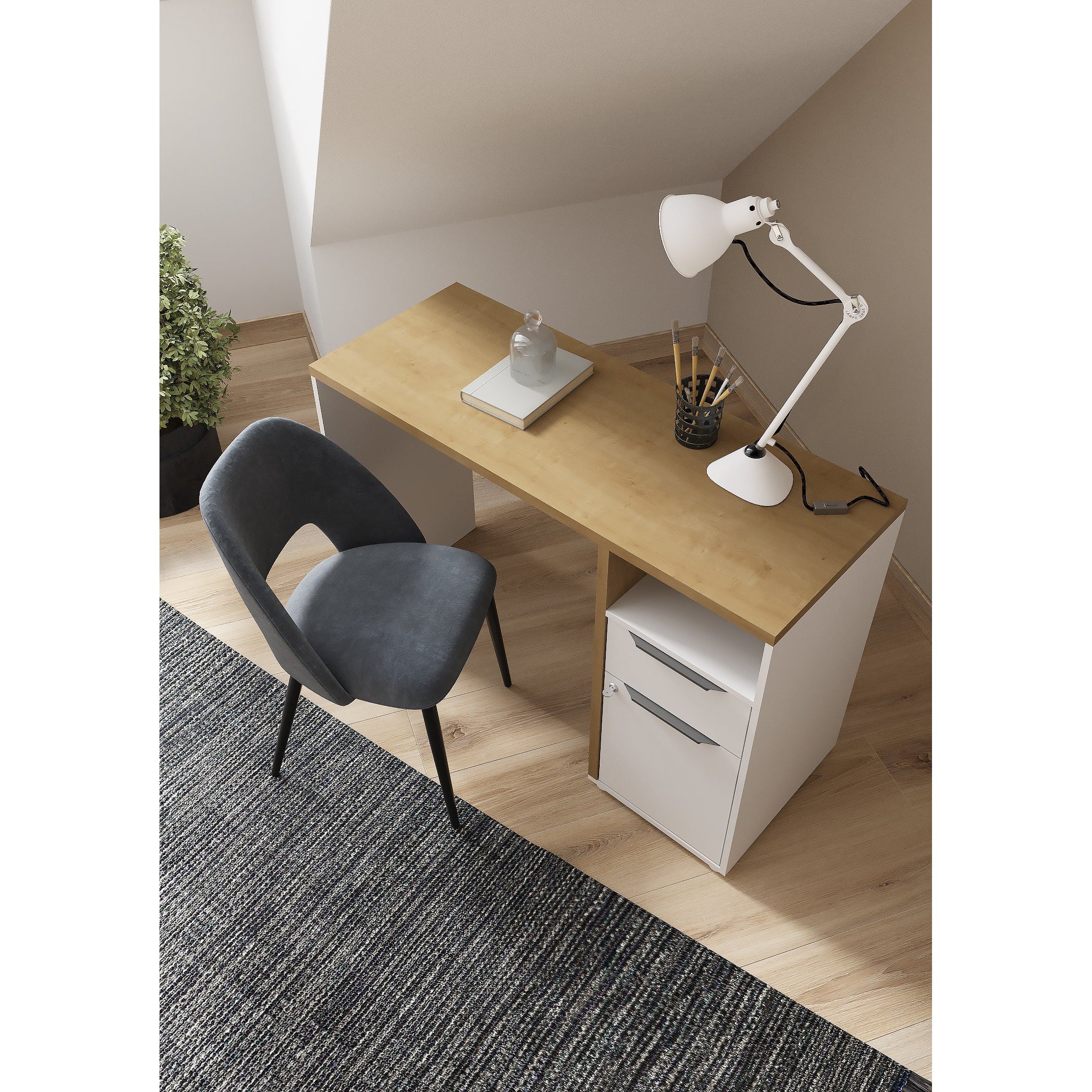 Luna White and Oak Office Study Desk with Storage Drawer and Cupboard