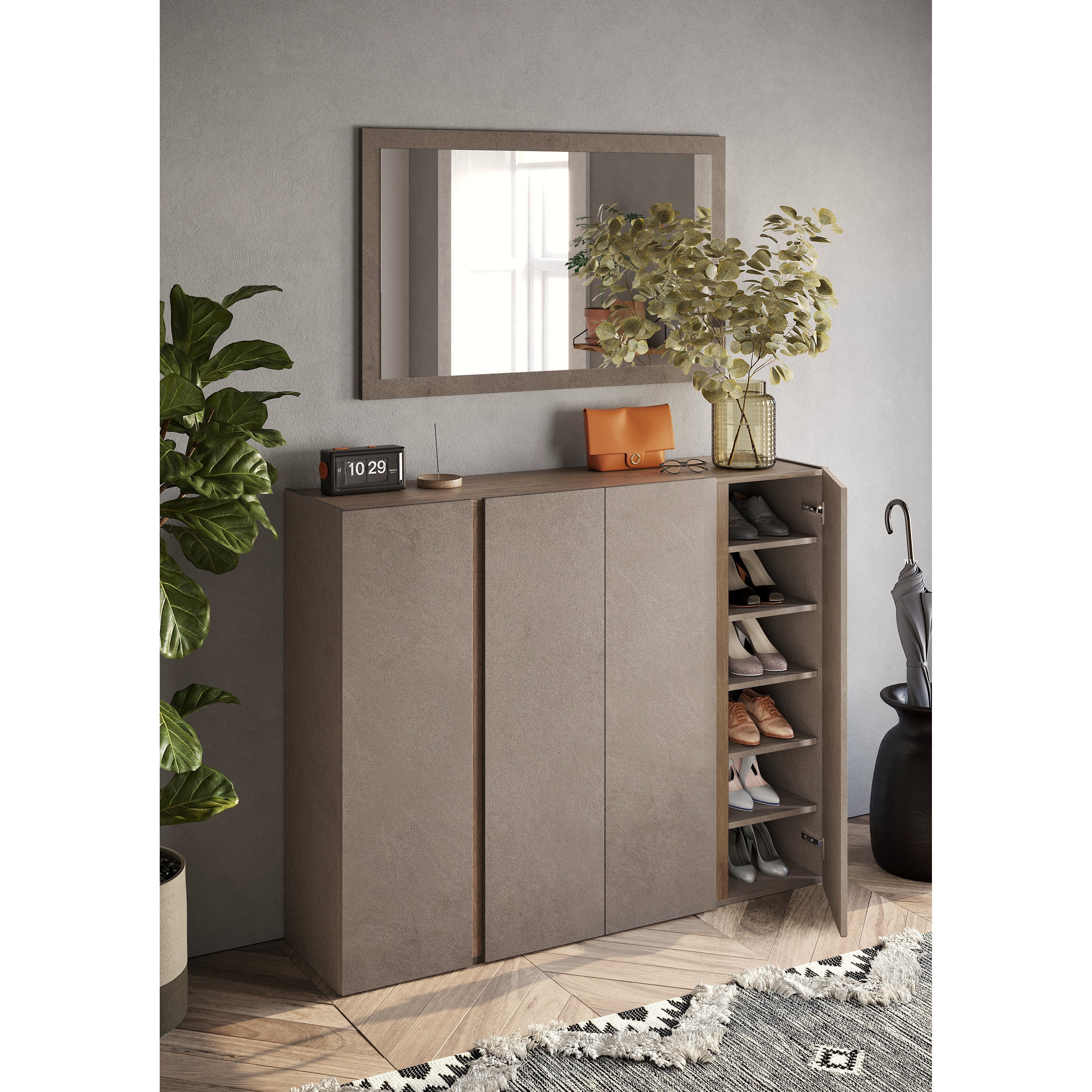 Bring a contemporary refresh to your home with the Chelsea 4 Door Bronze and Mercure Oak Large Shoe Cabinet, a stylish and practical addition. Find a selection of Large Shoe Storage Cupboards in a range of colour combinations. Made with Italian design, furnished to perfection in a sublime Bronze and Mercure Oak, 4 doors are ready to handle absolutely anything. Versatile as you can store more than just footwear, use this large shoe cabinet as an opportunity to keep your home organised and clutter-free.