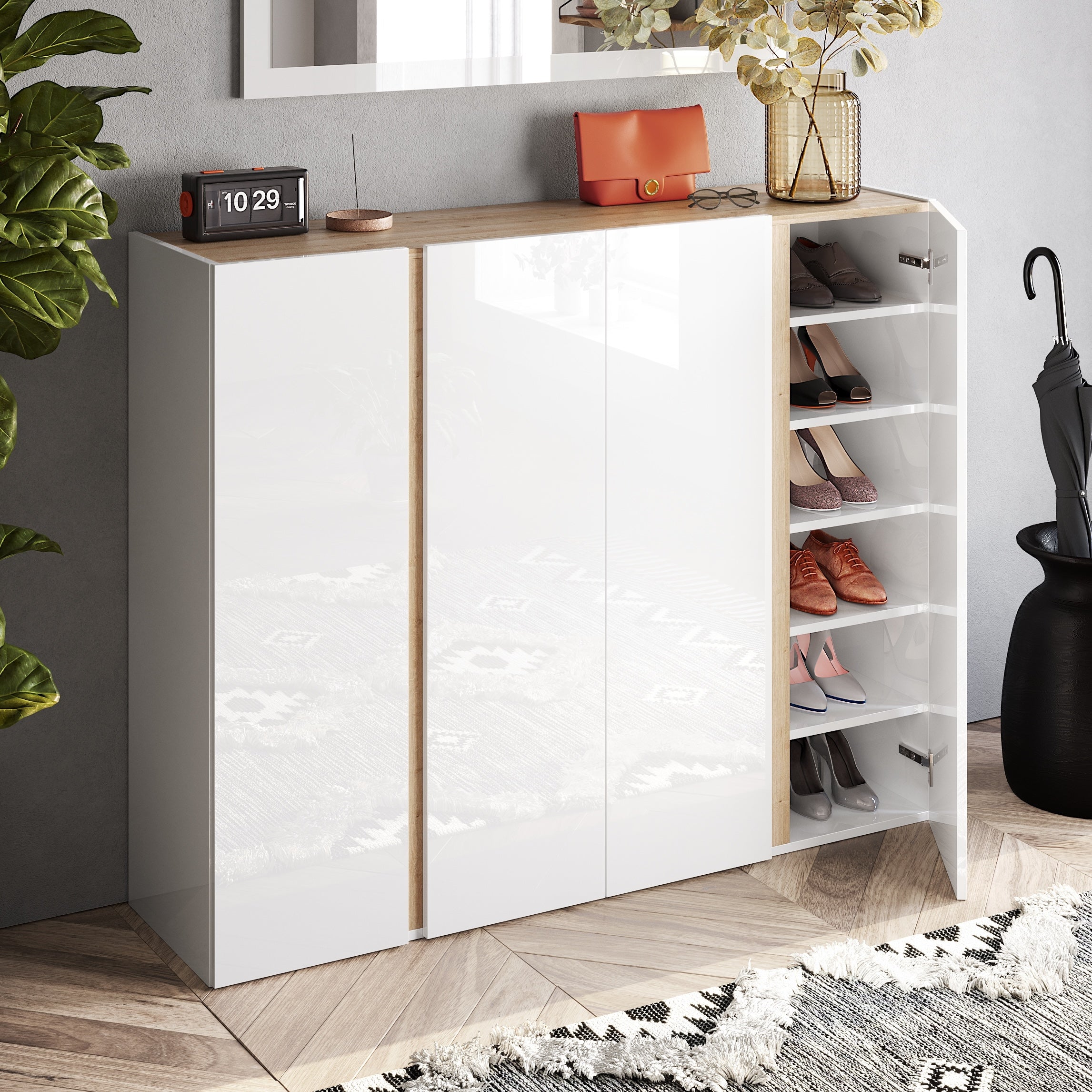 Some Key Features of The Chelsea 4-Door White Gloss and Cadiz Oak Shoe Cabinet: