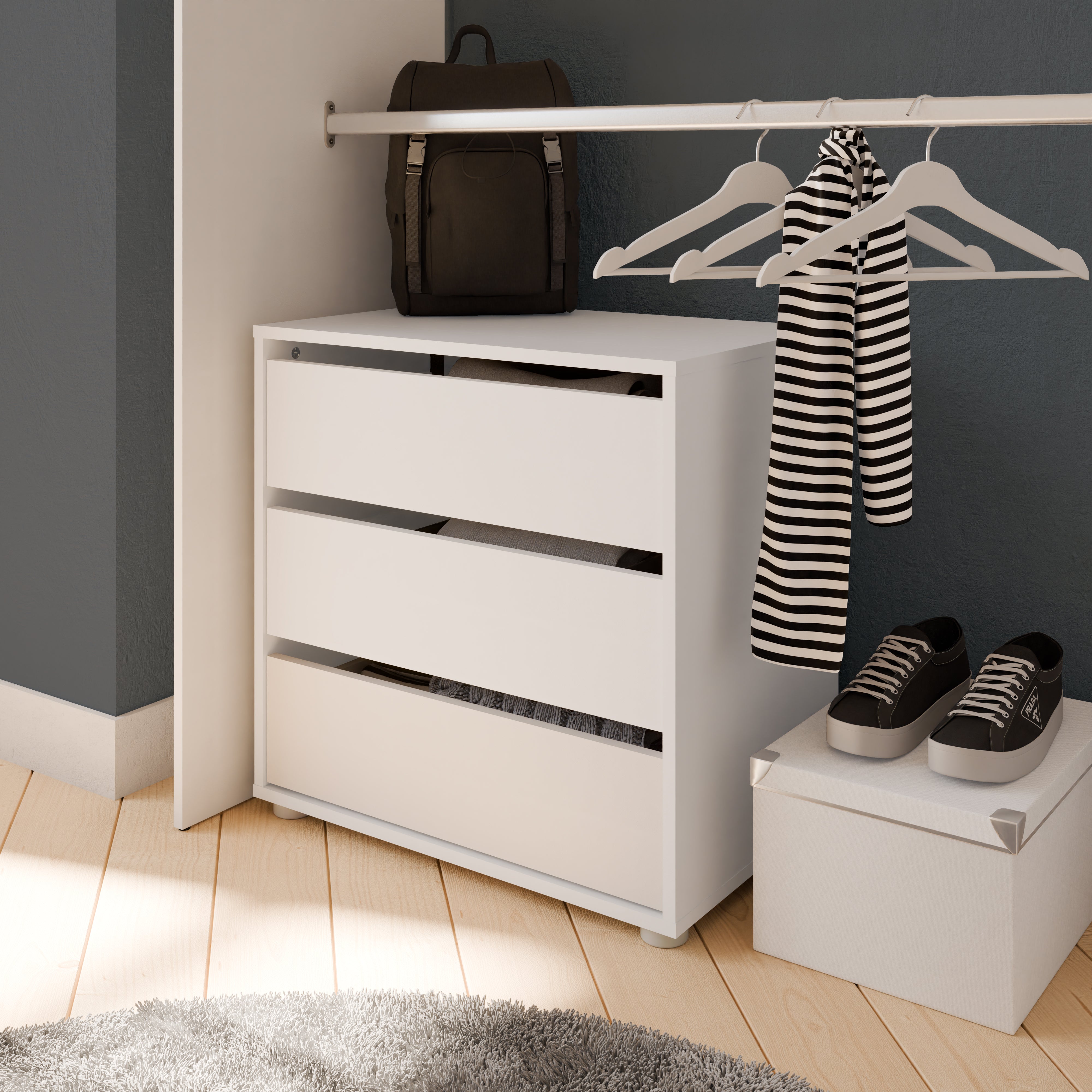 Key Features of Dallas Universal 3 Drawers Matt White 60cm Internal Chest of Drawers for Wardrobes: