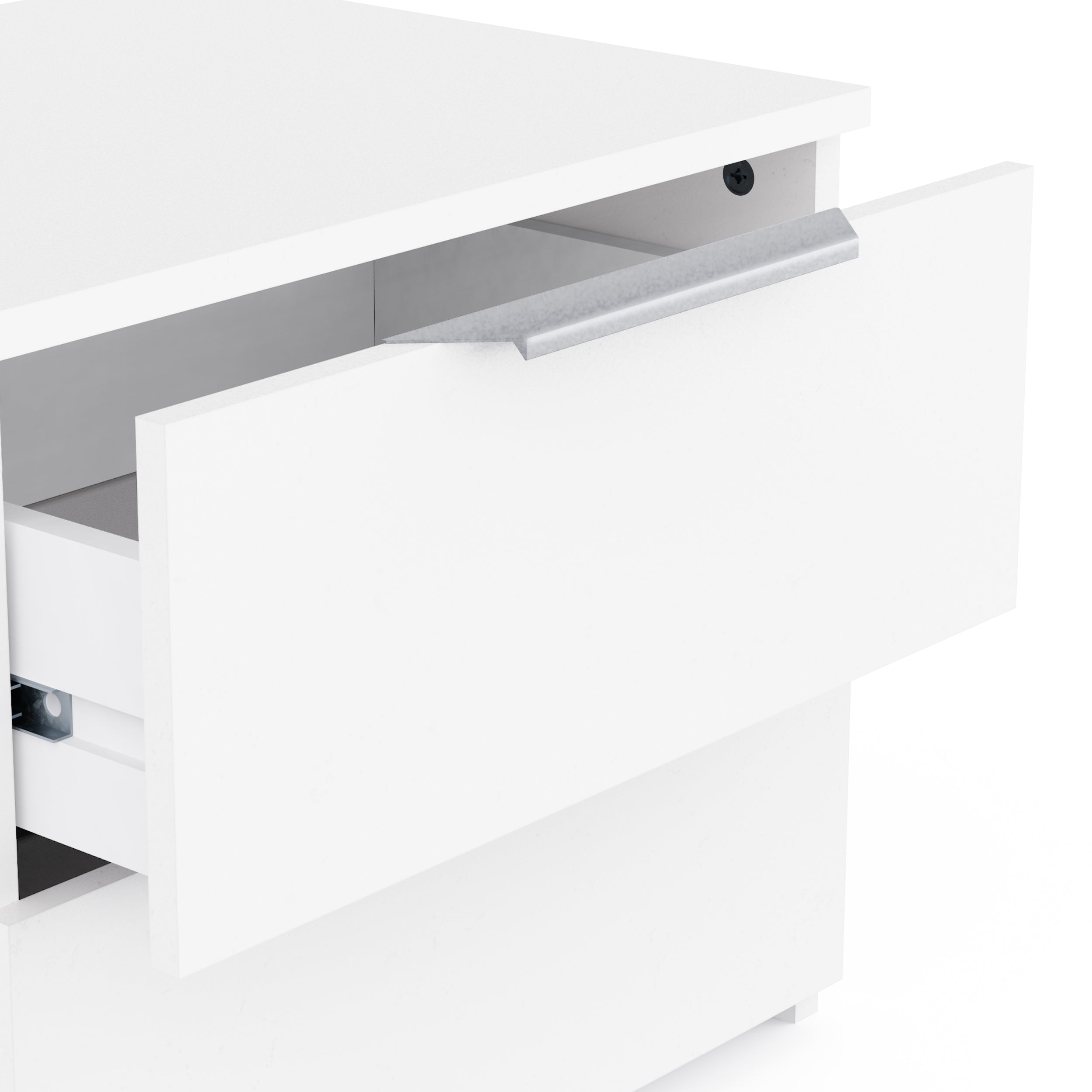 Complete your modern bedroom aesthetic with the sleek and practical Chicago 2 Drawer Bedside Table. This compact bedside table is finished in a clean matt white, offering a versatile and contemporary look. Designed for essential bedside storage, it features two generously sized drawers, providing convenient space for your nighttime necessities while keeping your bedside tidy.