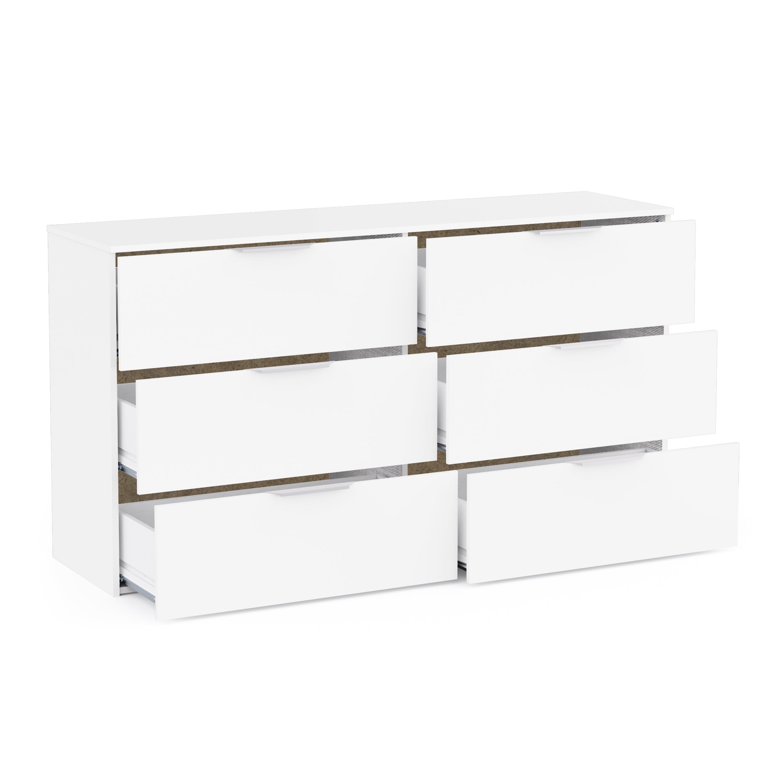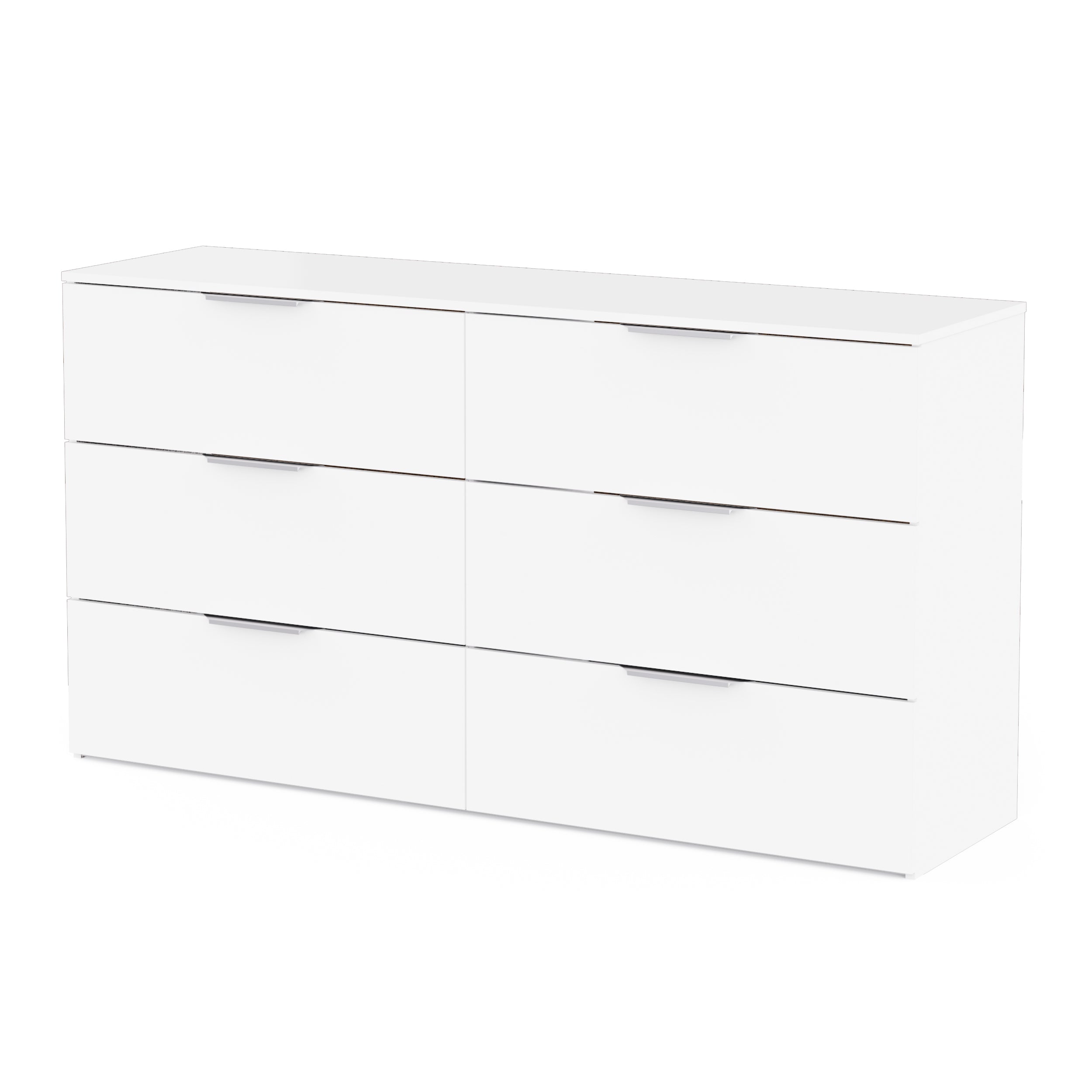 Maximise your bedroom storage with the highly practical Chicago 6 Drawer 150cm Chest of Drawers. This large chest of drawers is finished in a clean matt white, offering a versatile and modern aesthetic. Designed for extensive storage, it features six generously sized drawers, providing ample concealed space for clothing, linens, and other bedroom essentials.