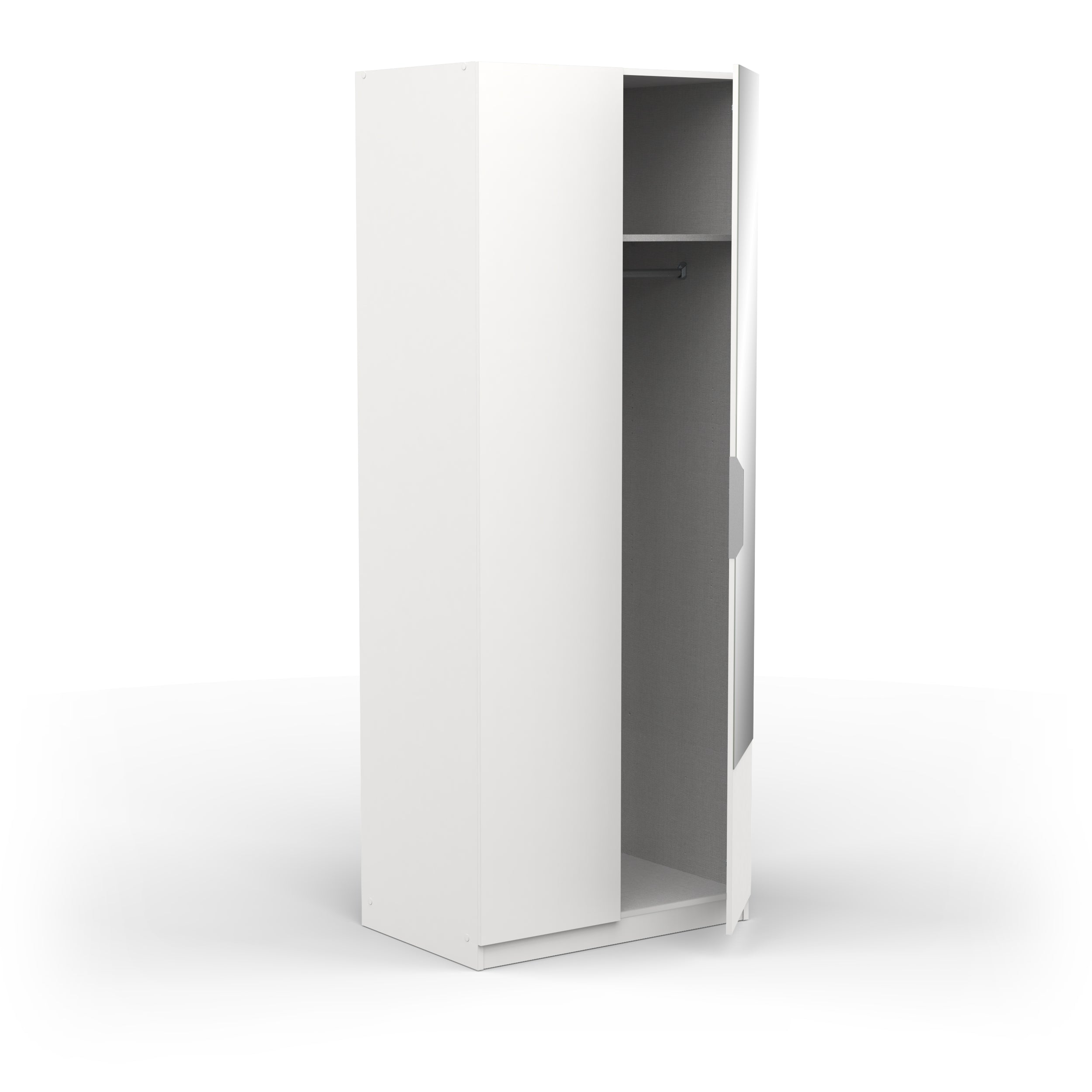 Shop the Chicago collection of Free-Standing Mirrored Wardrobes today with free UK Mainland delivery. Finished in a bright matt white finish this 2 door mirrored wardrobe it’s the perfect piece of bedroom furniture for any home where space is limited. A narrow compact design allows this 80cm double wardrobe to fit into any space making it ideal for small apartments and bedrooms. With ample storage space this wardrobe offers a large hanging rail perfect for dresses and a top hat shelf for folding away clothes. A mirrored door is great for small spaces, it allows you to brighten up your room and create the illusion of more space.
