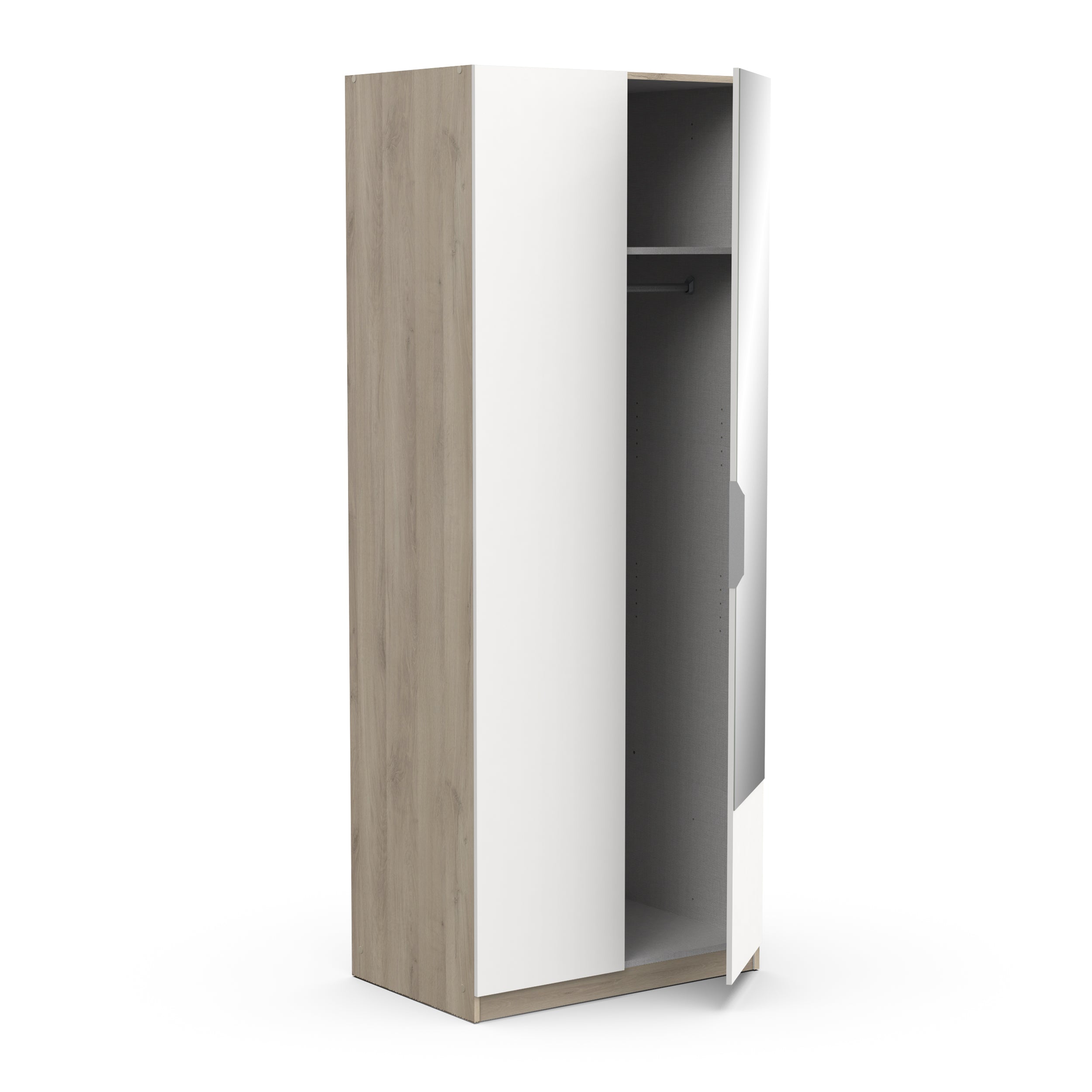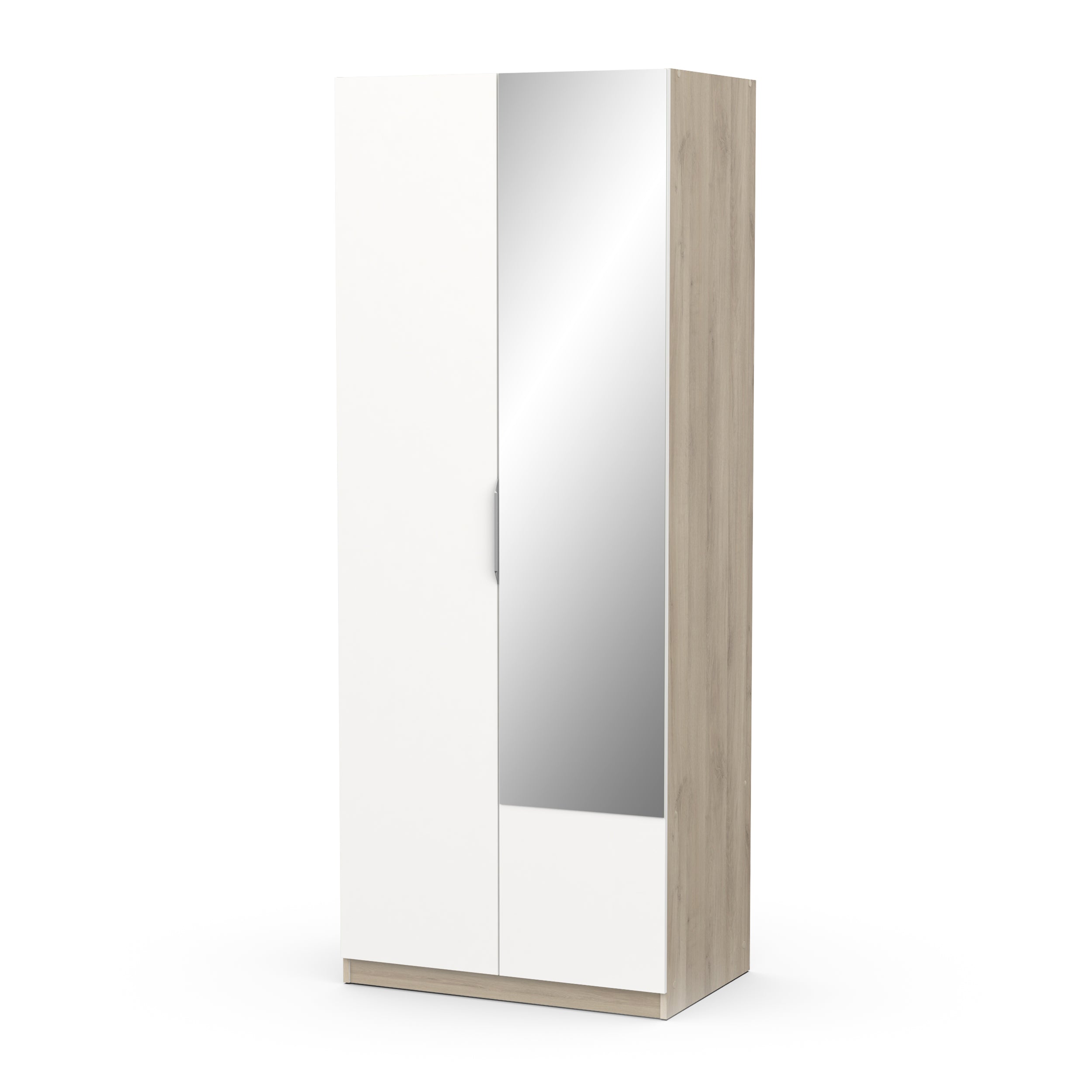 Shop this chic and modern Chicago Mirrored Wardrobe today in a stunning Matt White and Kronberg Oak effect colour combination. Without taking up too much space this 80cm double wardrobe offers ample storage space. Its compact design makes it a brilliant addition to any small bedroom or apartment. Inside you will find a large hanging rail to keep all your clothes organised and a shelf perfect for folding items such as trousers or even accessories. This freestanding hinged wardrobe offers an elegant, mirrored door perfect for creating the feeling of spaciousness. If you’re looking for the ultimate storage solution, the Chicago collection of wardrobes is the perfect addition for your home.