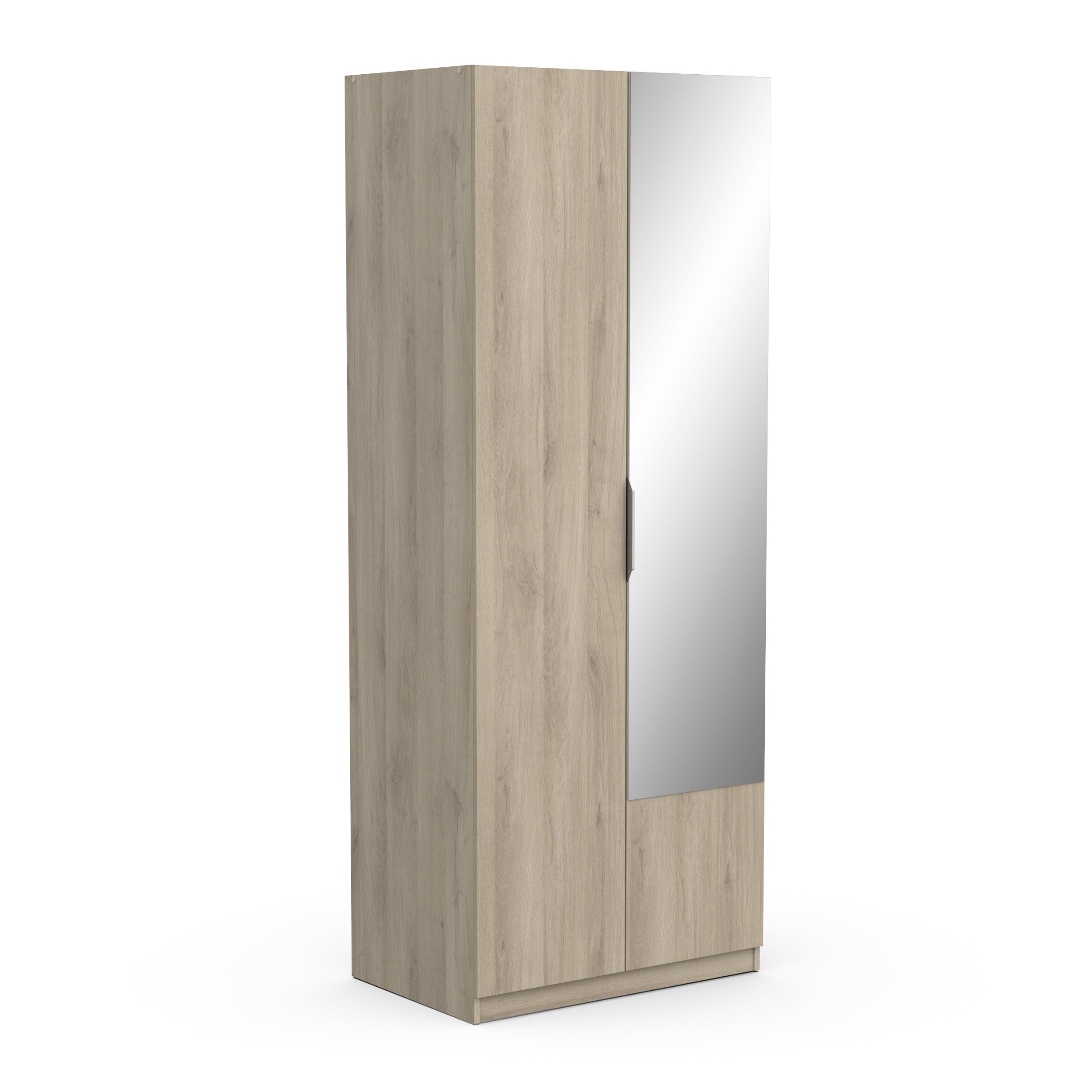 Add a breath of fresh air to your bedroom today with the Chicago 80cm Mirrored Wardrobe. Finished in a stylish, modern Kronberg Oak Effect this wardrobe will easily blend into any existing interior. A mirrored door will create a sense of spaciousness in any small bedroom or apartment. Its compact design doesn’t compromise storage space, inside you will find a large hanging rail and shelf allowing you to effortlessly organise your clothing and accessories all in one place. If you’re looking for the ideal storage solution then look no further!