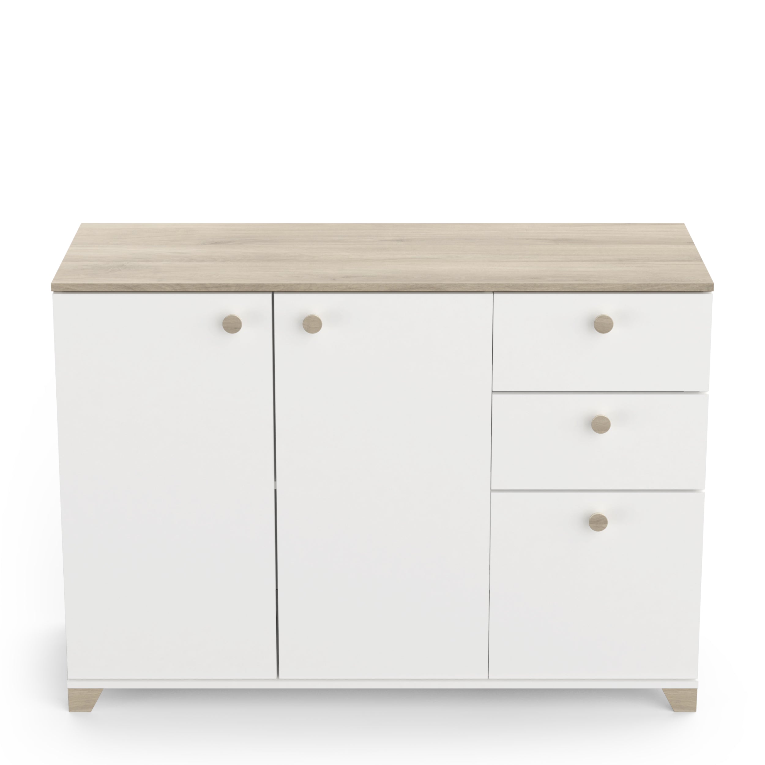 Key Features of Prague 3 Door 2 Drawer 120cm Matt White and Oak Sideboard :