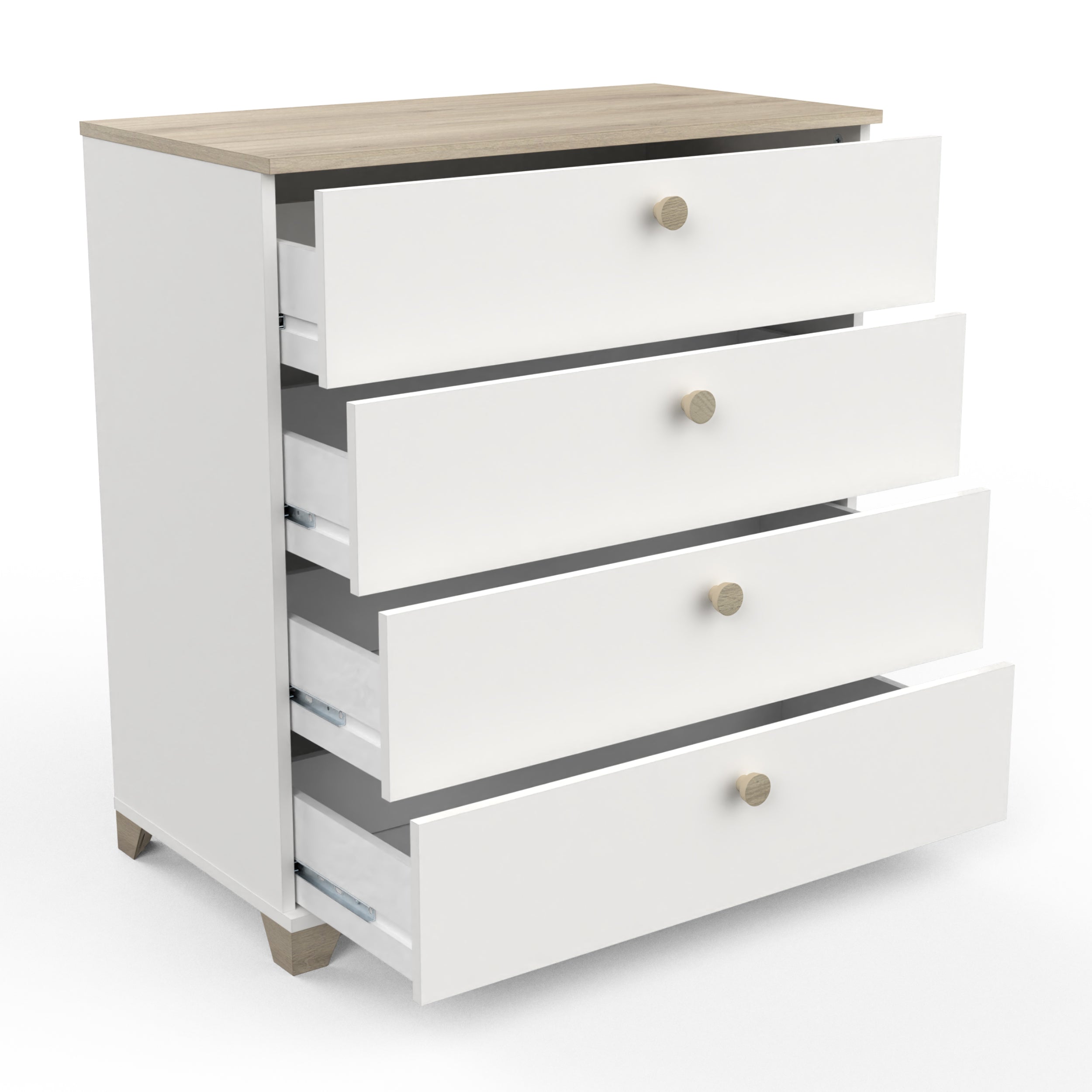 Key Features of Prague 4 Drawer Matt White and Oak Chest of Drawers:
