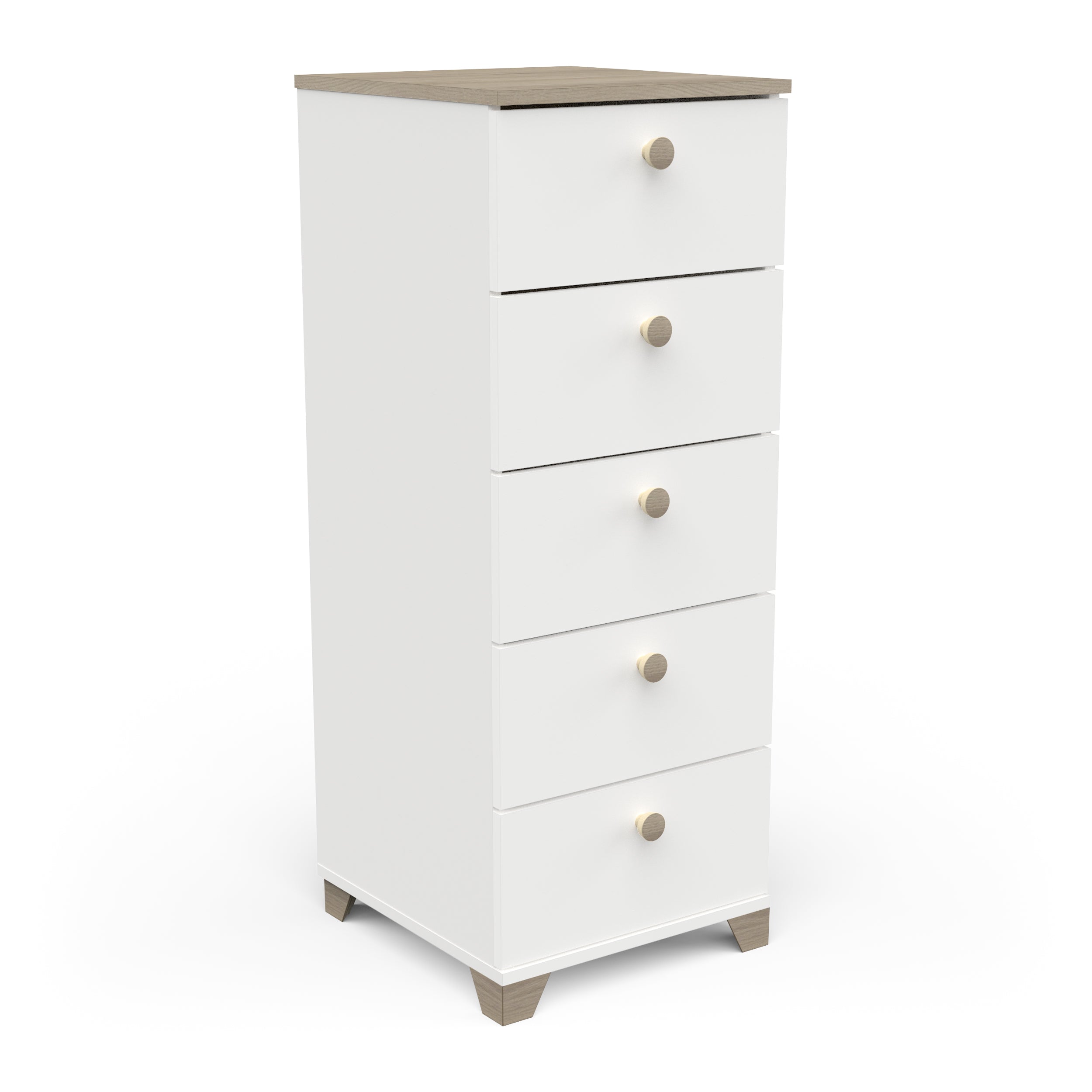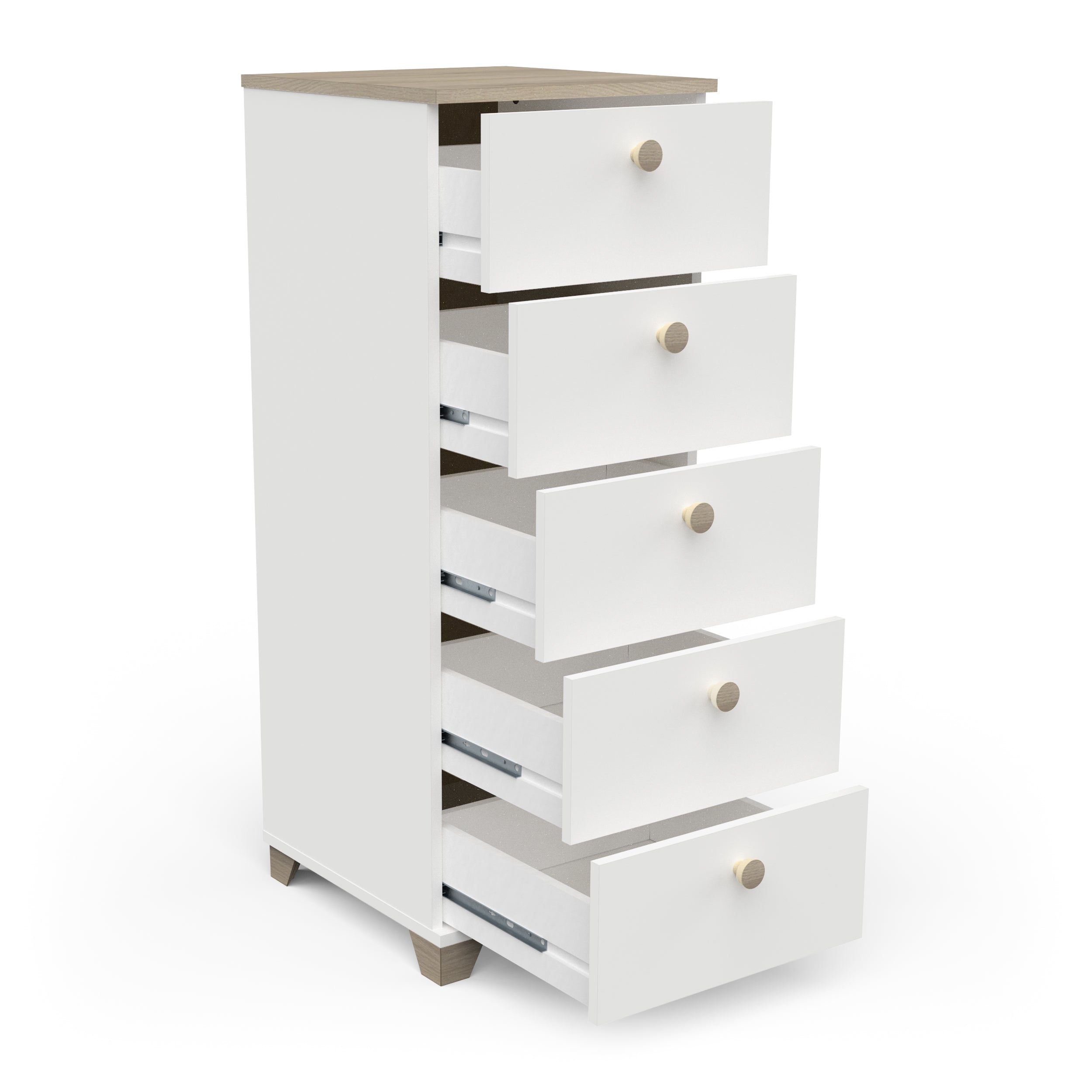 Key Features of Prague 5 Drawer Matt White and Oak Tall Chest of Drawers:
