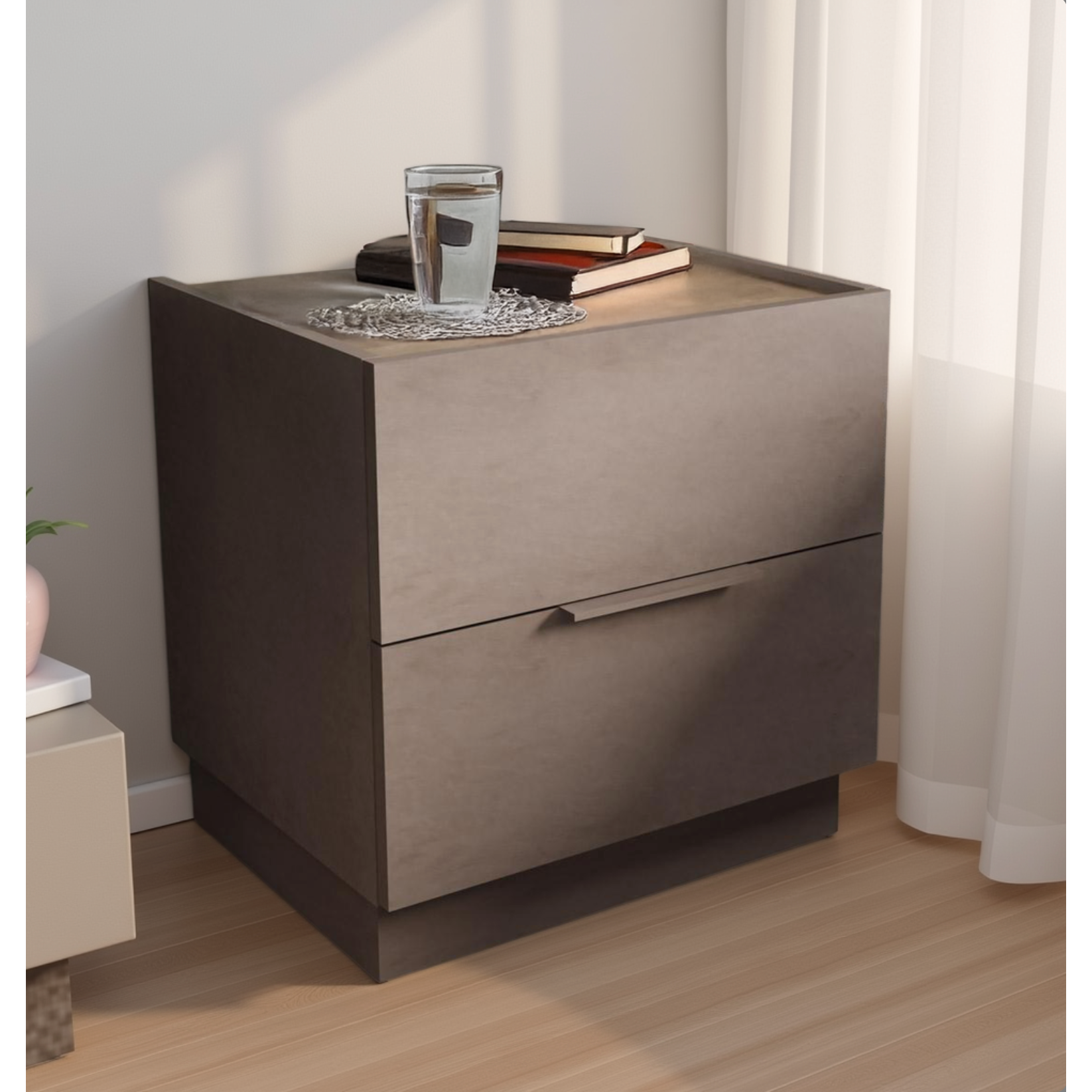 Complete your contemporary bedroom aesthetic with the sleek and practical Cuba 2 Drawer Bedside Table. Finished in Bronze and featuring a contrasting Mercure Oak Top, this bedside table offers a luxurious and minimalist touch perfect for any modern home. It features two drawers, providing convenient and discreet storage for your nighttime essentials, keeping your bedside clutter-free.