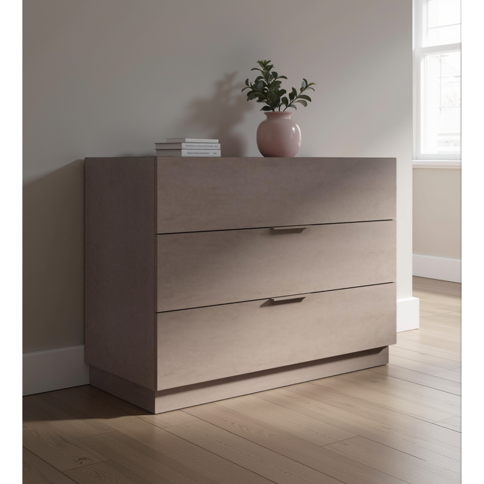 - 3 Drawers: Three deep drawers provide extensive space for all your bedroom items, from folded clothes to accessories, helping to maintain a tidy room.