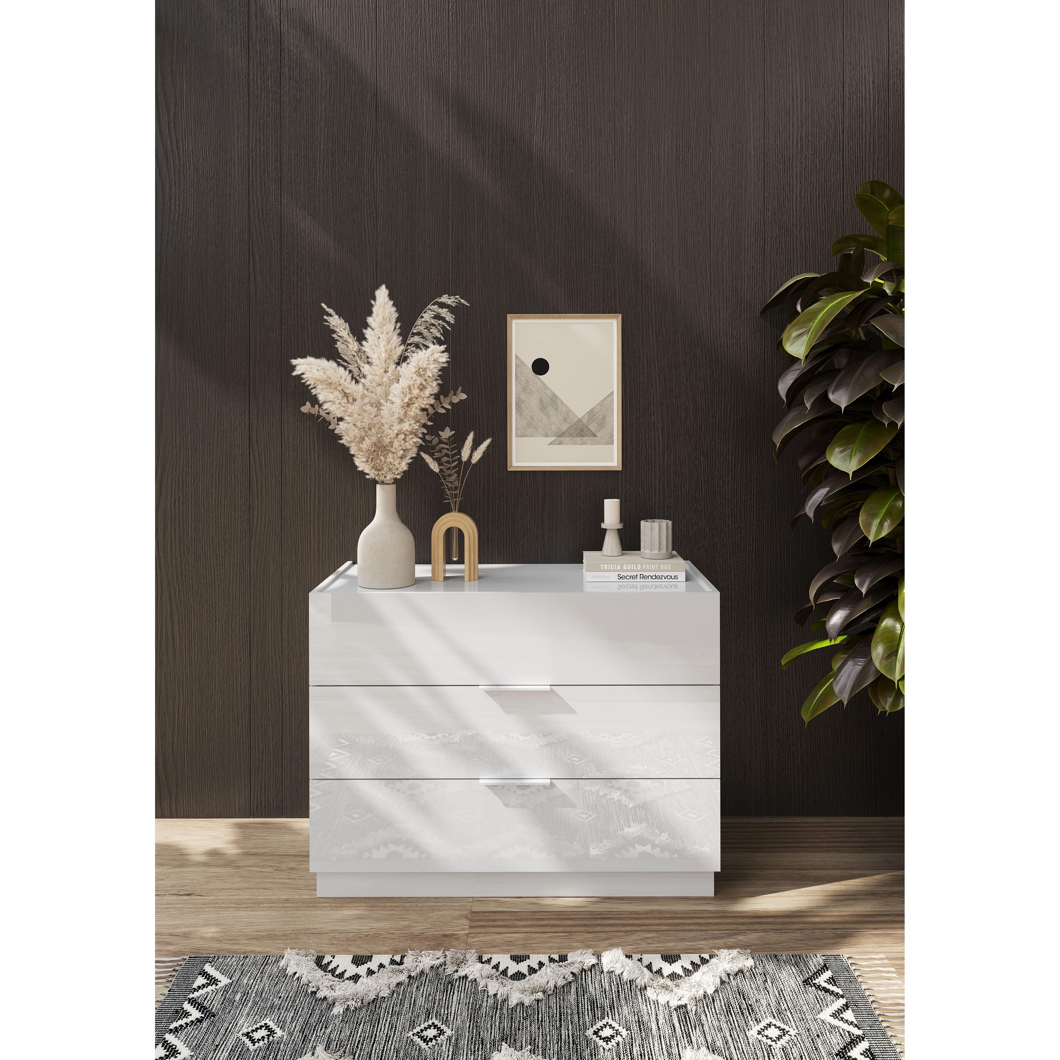 - White High Gloss Finish: The entire chest, including the top, boasts a pristine white high gloss finish, delivering a truly modern, luminous, and easy-to-clean surface.