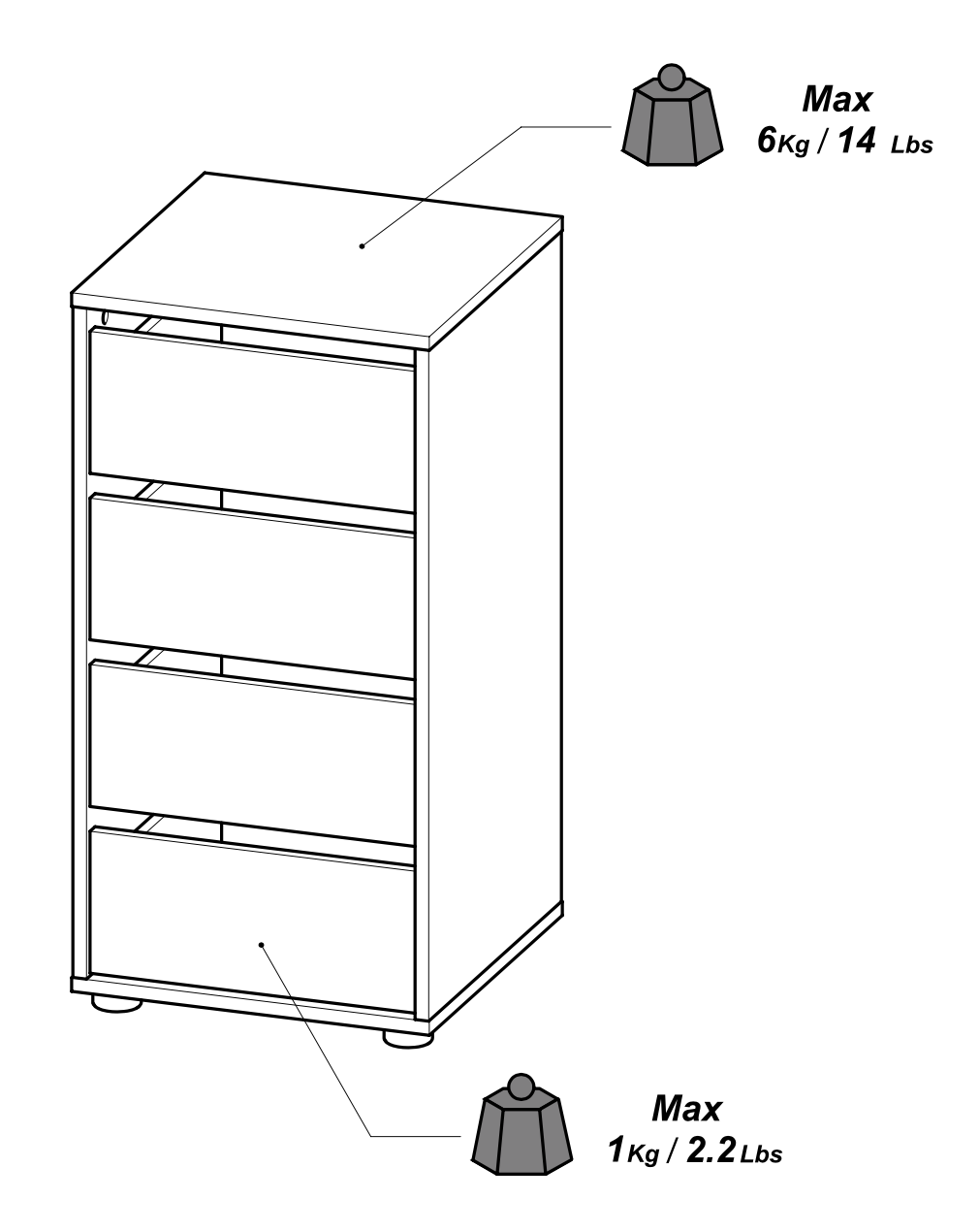 Key Features of Dallas Universal 4 Drawers Matt White 40cm Tall Narrow Internal Chest of Drawers for Wardrobes: