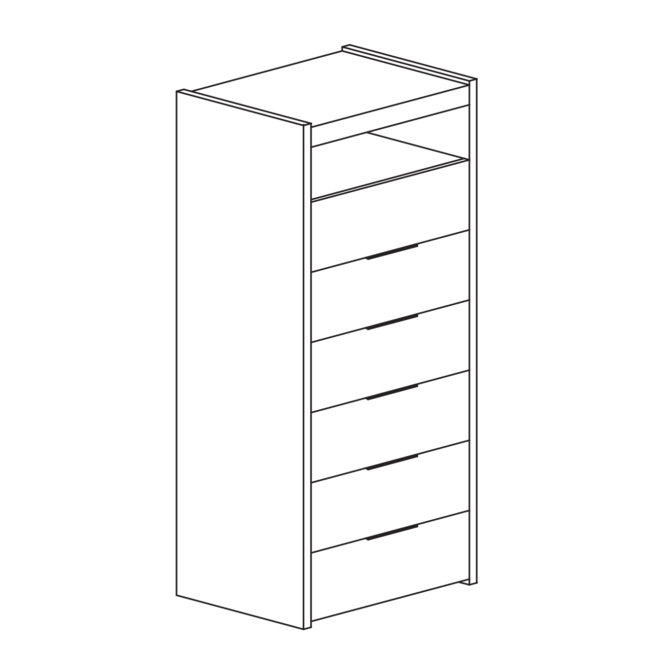 Maximise your bedroom storage with the functional Dune 6 Drawer Tall Chest of Drawers. Finished in white high gloss, this tall chest offers a modern aesthetic perfect for any home. Designed with both practicality and style in mind, it features six drawers, providing extensive storage for clothing, linens, and other bedroom essentials. A convenient open compartment at the top offers an ideal space for displaying decorative items, books, or frequently used personal effects.