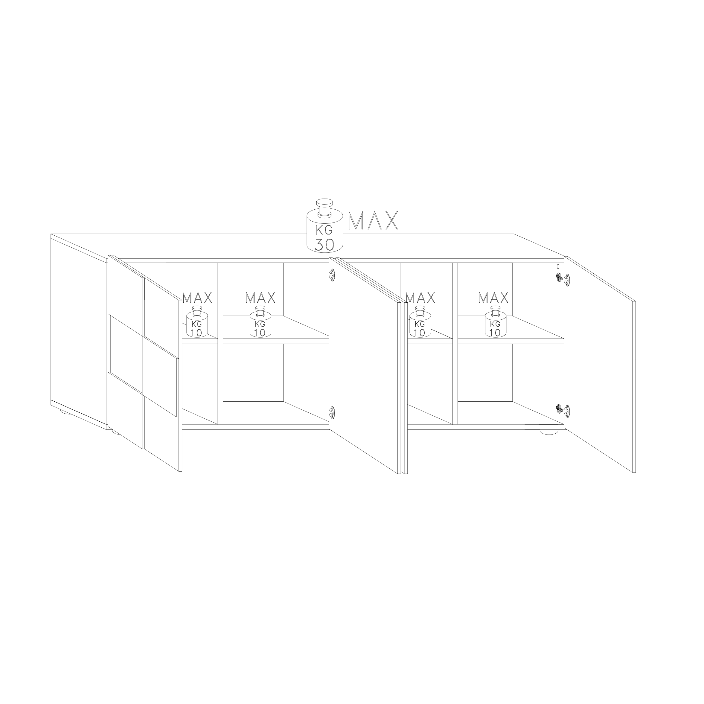 Introducing the Lyon 4 Door Large Concrete Grey Sideboard, an impeccable statement piece for your home. Elevate your existing decor with a grey sideboard curated with style in mind. A chequerboard frontal design, unmissable and admirable to your friends and family, Lyon does more than just look good. Built with a whopping 4 doors and internal shelving designed to host multiple compartments so you can stay organised. Keep your home looking stylish and clutter-free with Lyon.
