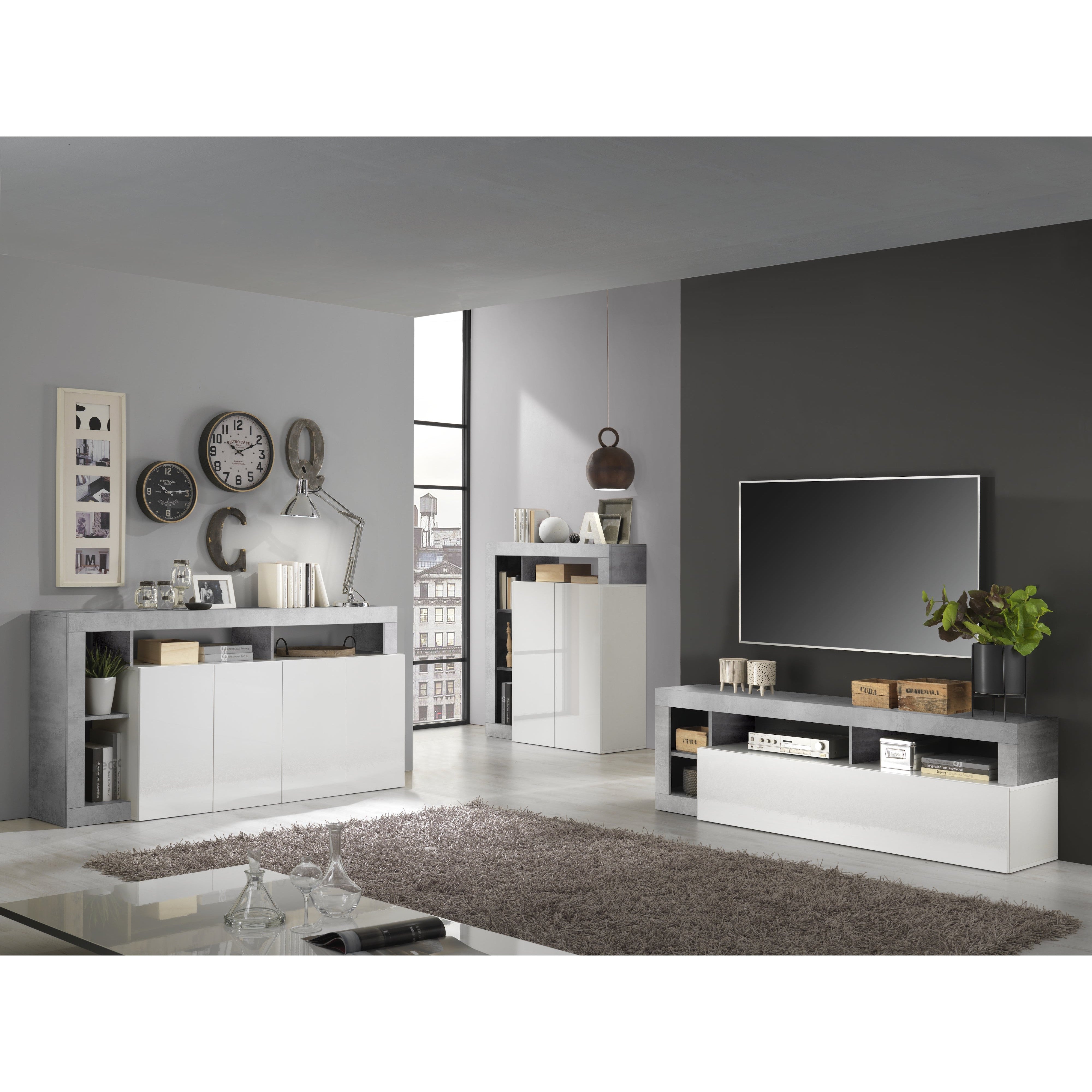 Key features of the Lorenzo 3 Door White Gloss and Concrete Grey Sideboard:
