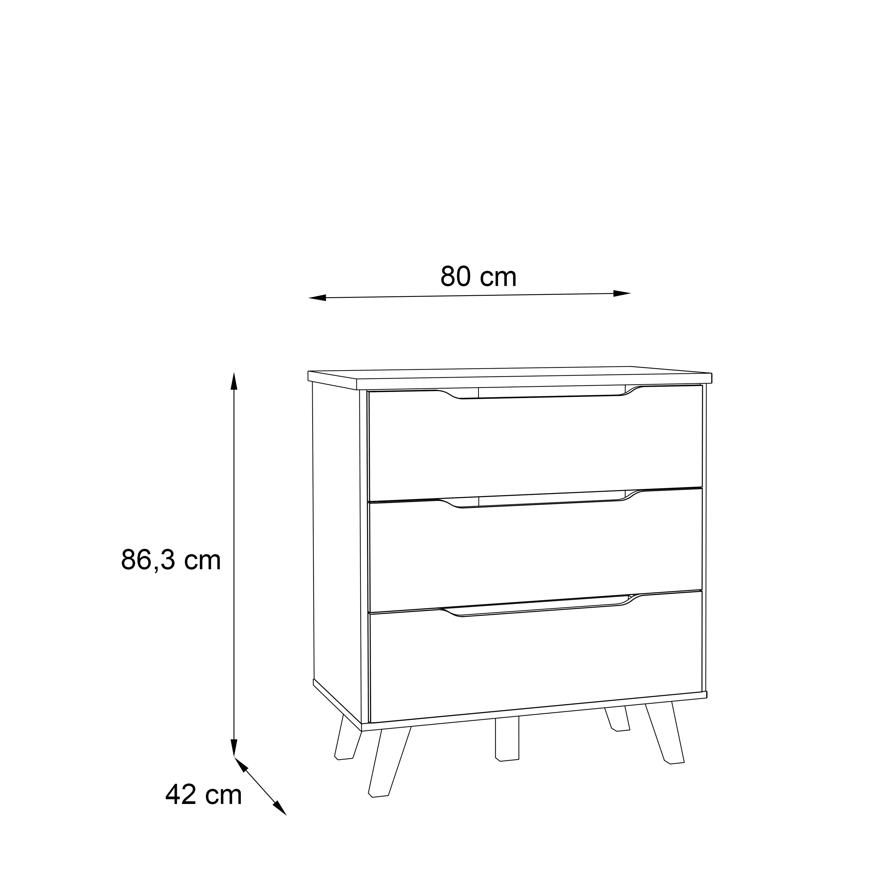 • Dimensions: Measuring Width 80cm, Height 86cm, and Depth 42cm, this chest of drawers offers a practical storage solution without taking up excessive floor space.