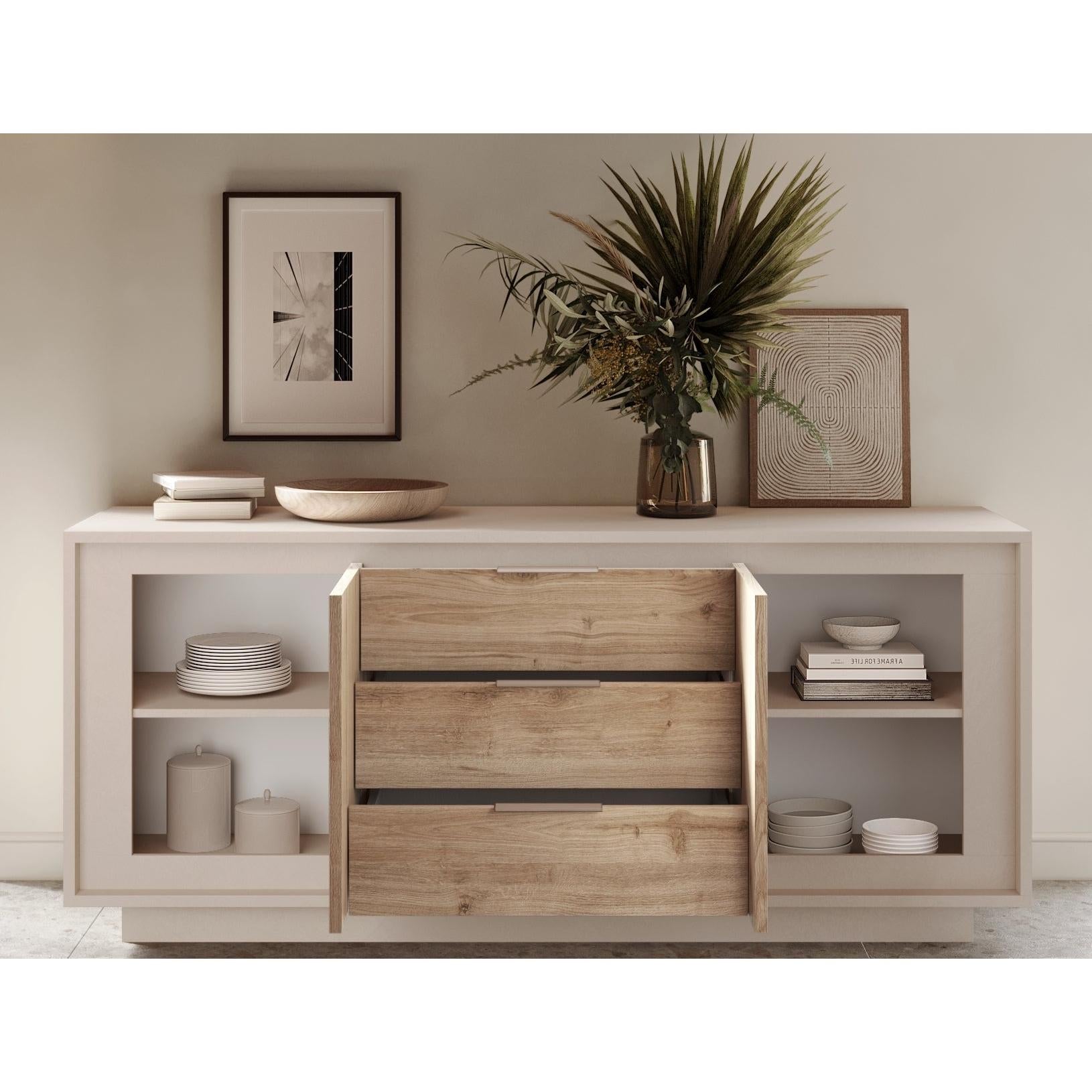 Key Features of Berlin 2 Door 3 Drawer 180cm Cashmere and Cadiz Oak Sideboard: