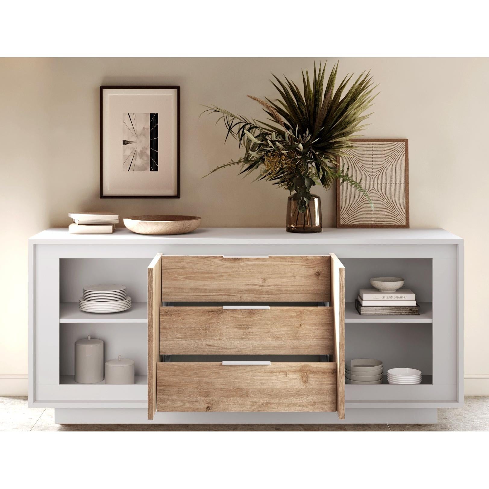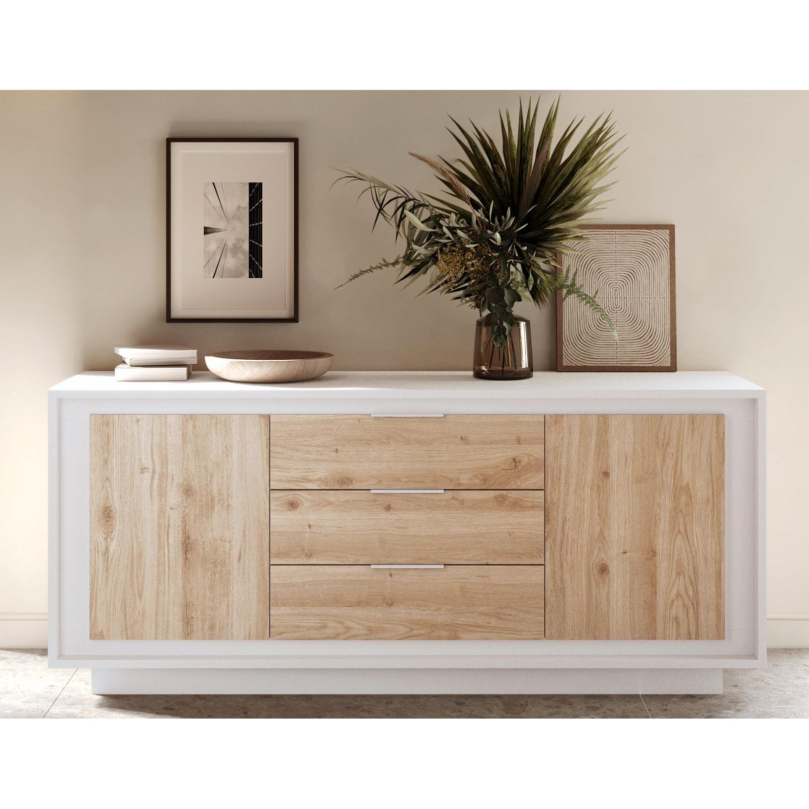 Key Features of Berlin 2 Door 3 Drawer 180cm Matt White and Cadiz Oak Sideboard: