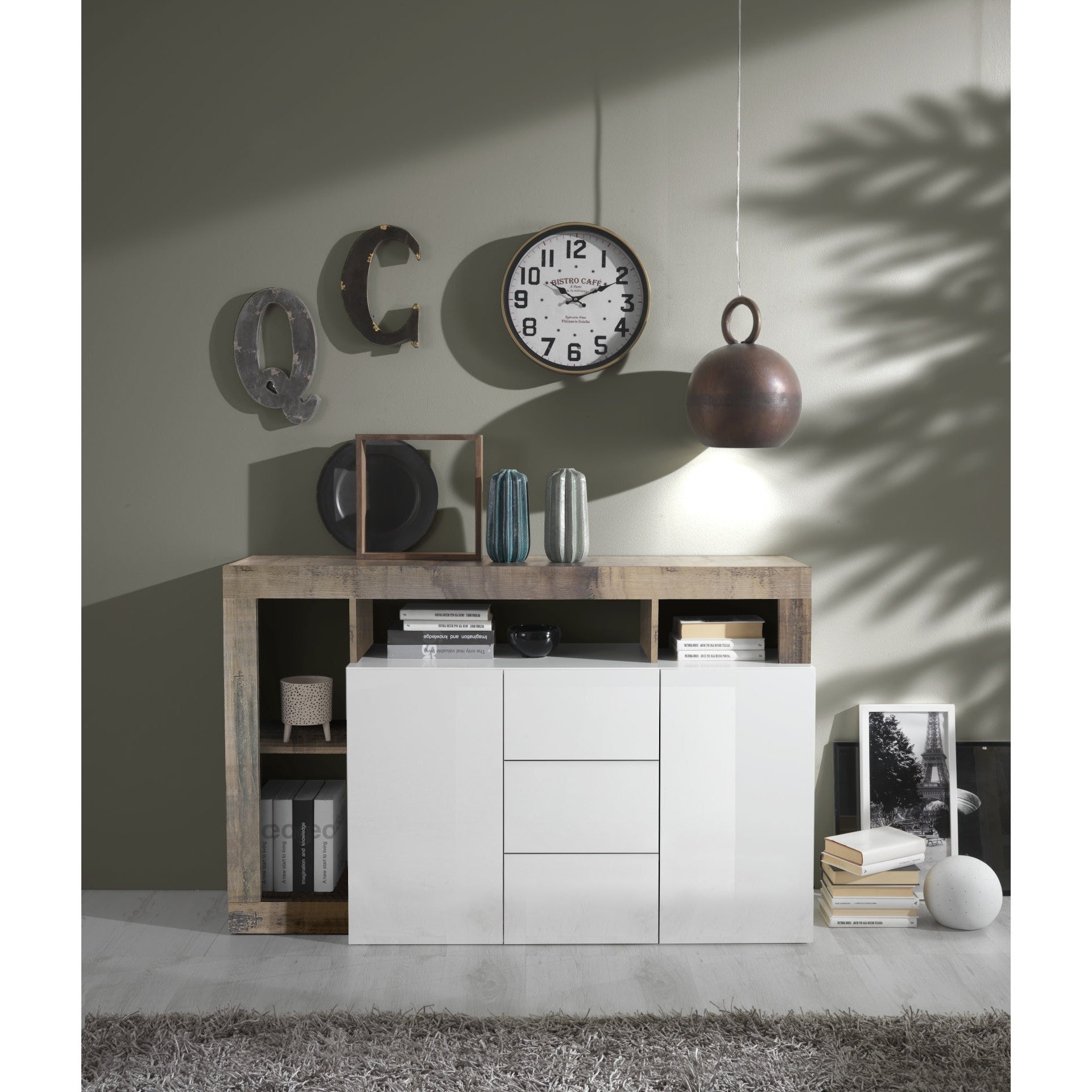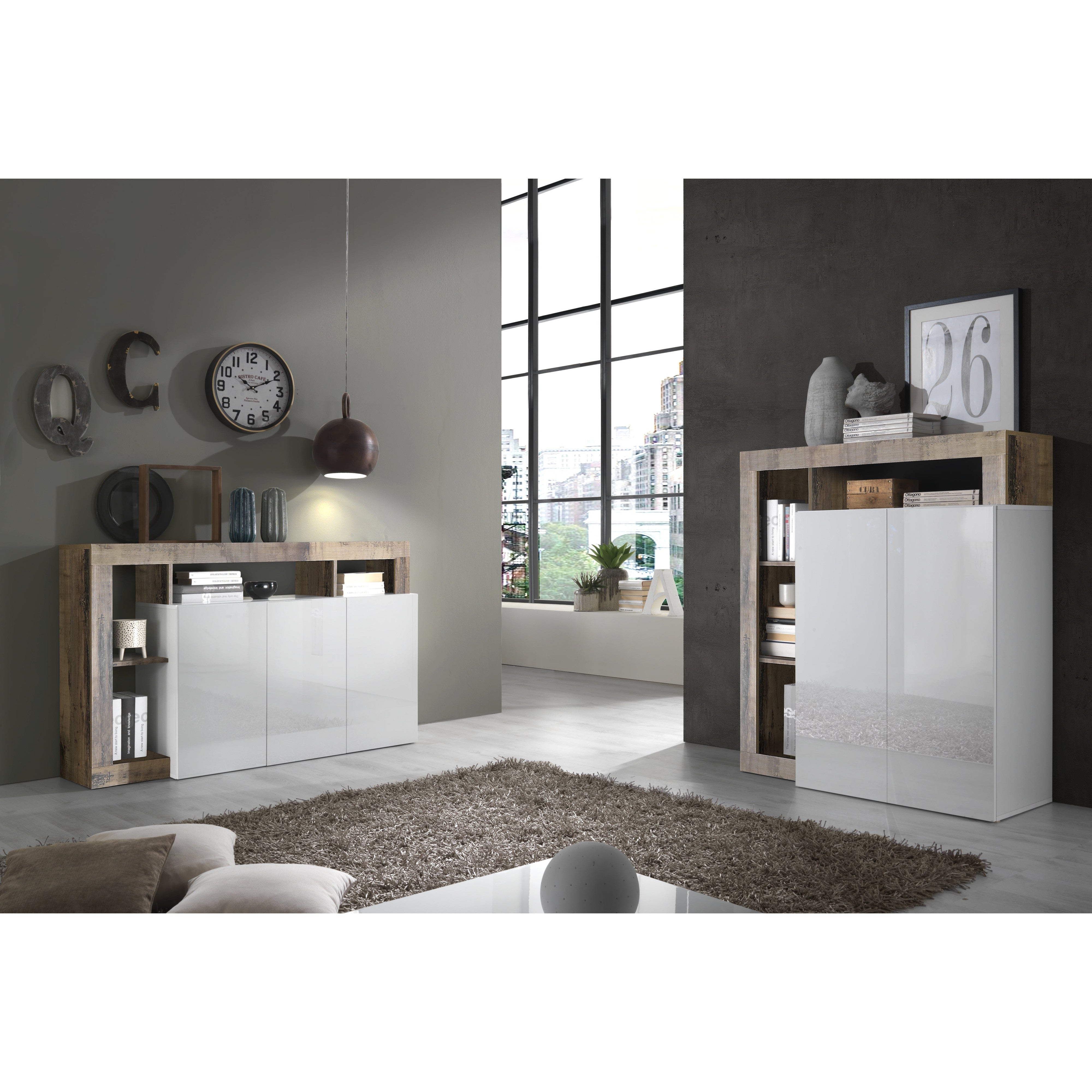 Create a captivating focal point with the Lorenzo 2 Door 3 Drawer White Gloss and Pero Oak Sideboard, a minimalist piece that elevates your home decor. With precision and durable materials, white gloss cabinets, 2 doors and 3 drawers ensure a secure and stable platform for all your valuable items. A Pero Oak shelving structure that wraps around the cabinets provides a unique way to display your treasures and showcase your style and creativity. Lorenzo is offering a touch of class, wouldn’t you agree?