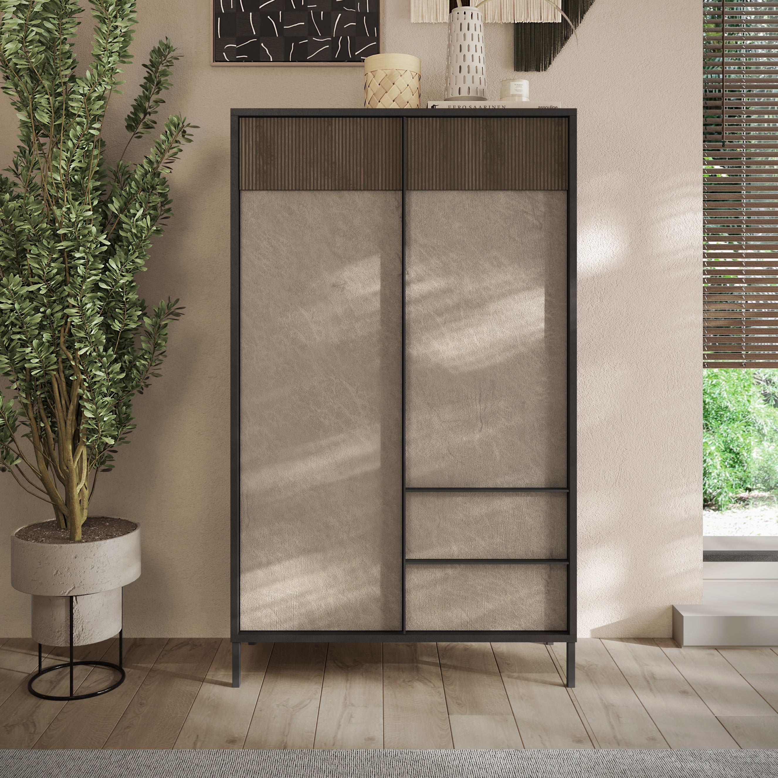 Venice 2 Door 2 Drawer Grey and Mercure Oak Tall Sideboard/Highboard