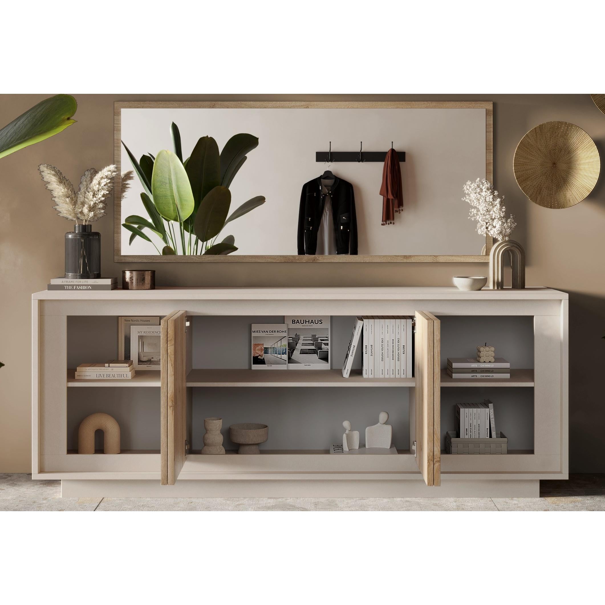 Berlin 4 Door 207cm Cashmere and Cadiz Oak Sideboard