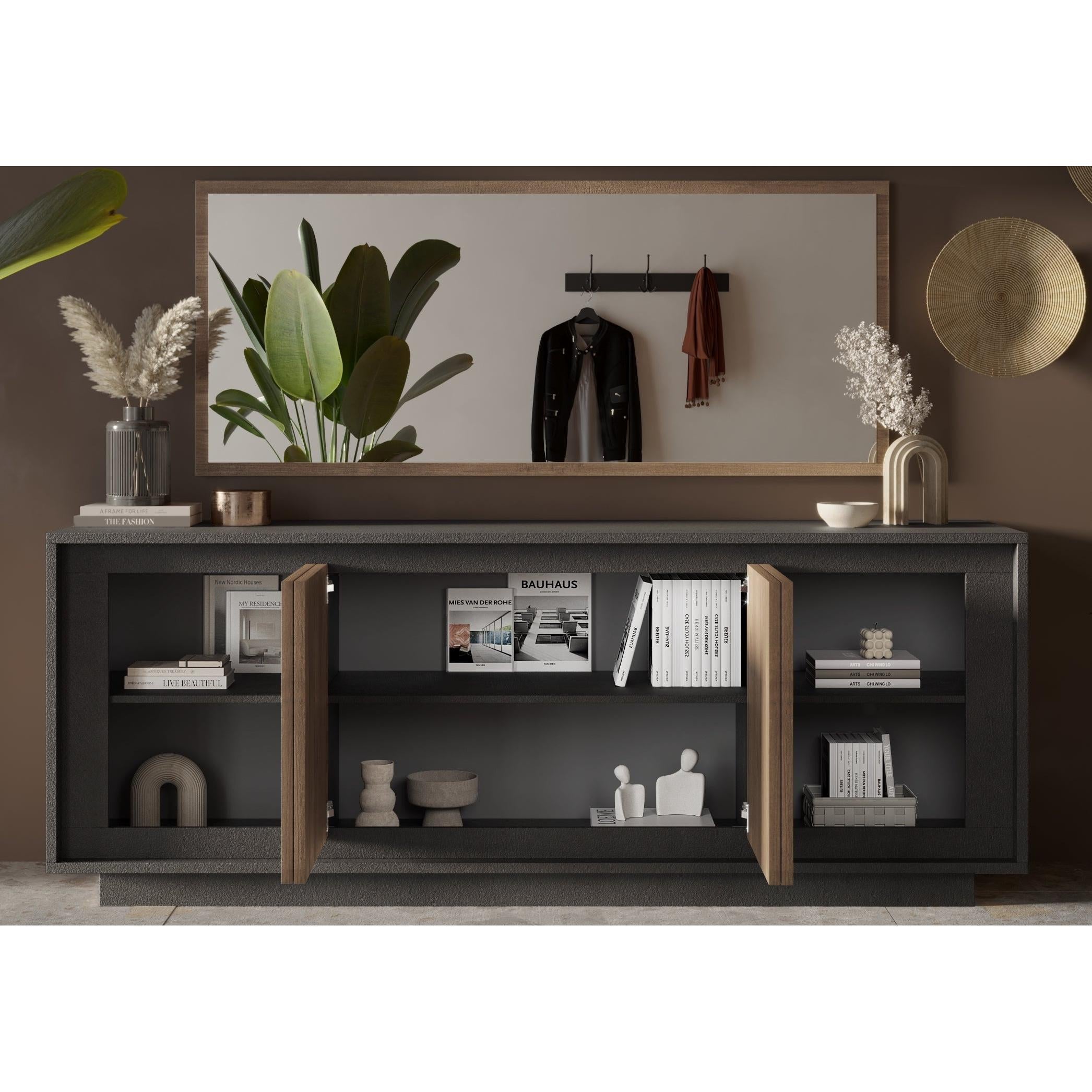 Key Features of Berlin 4 Door 207cm Grey and Mercure Oak Sideboard: