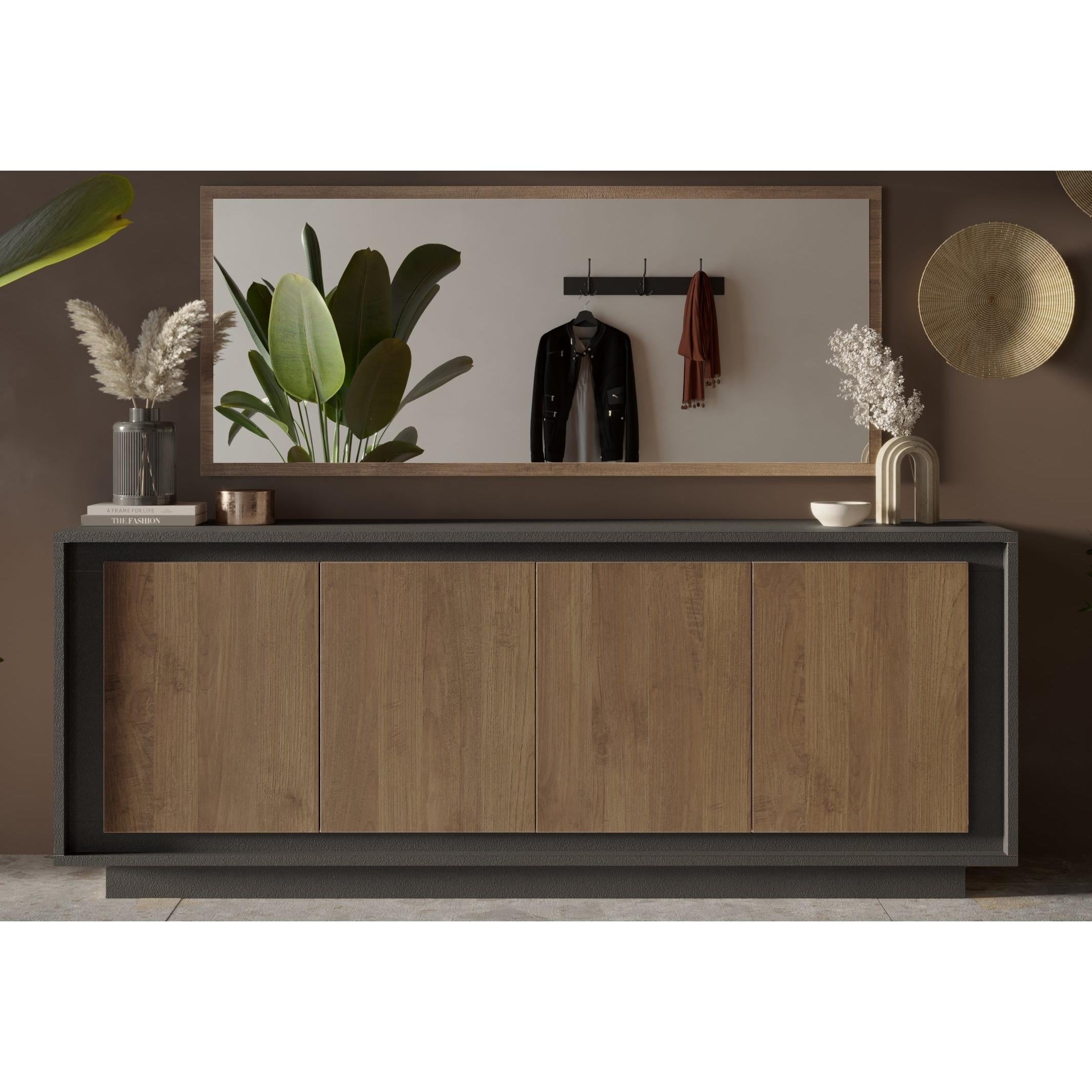 Berlin 4 Door 207cm Grey and Mercure Oak Sideboard