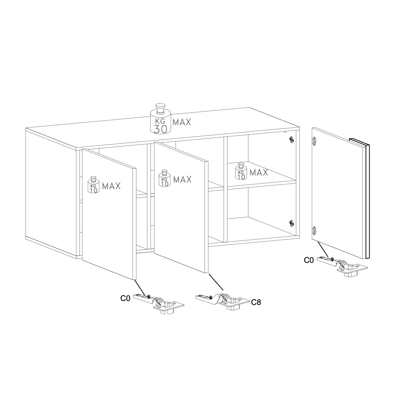 - 3 Door with Internal Shelving for Storage