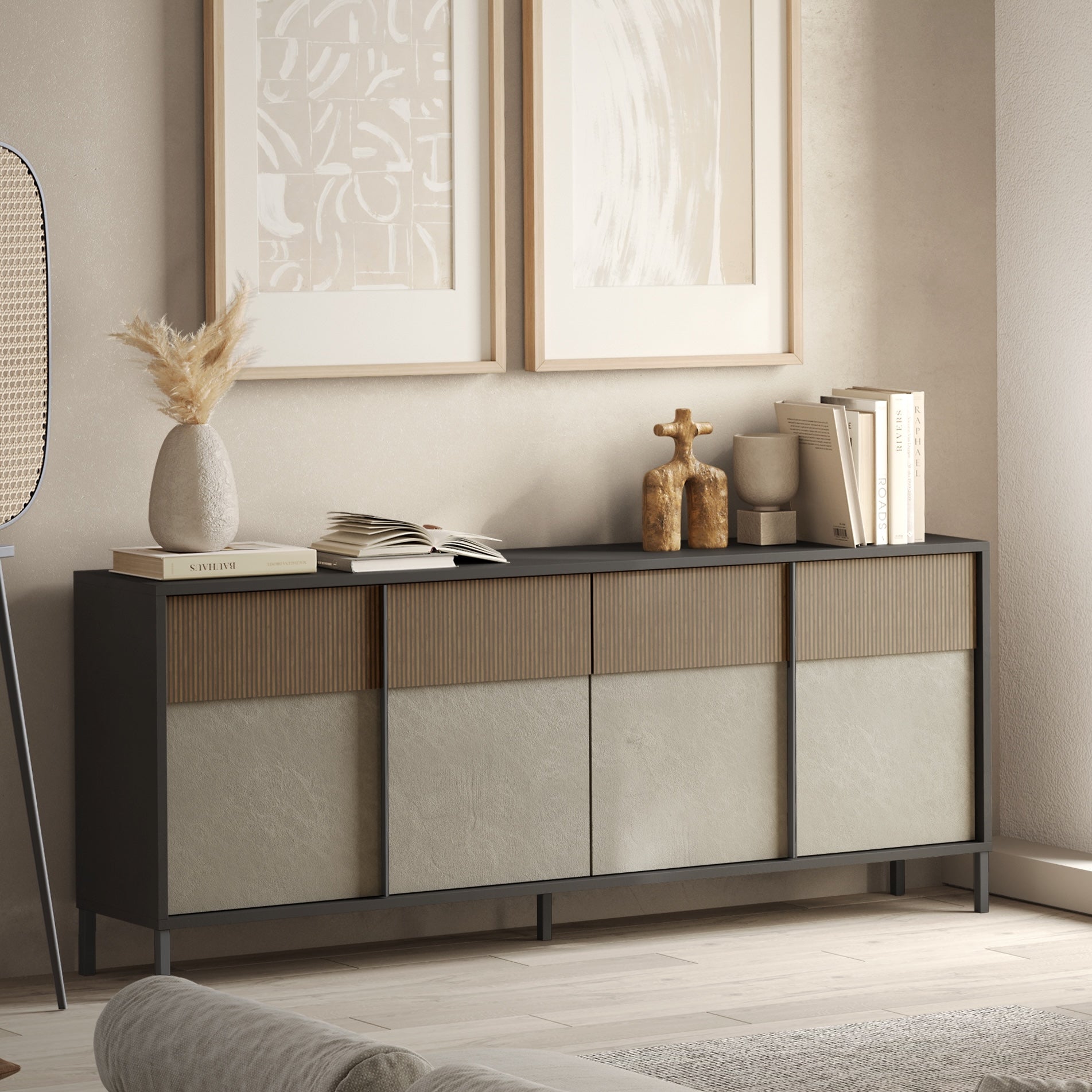 Key features of the Venice 4 Door Grey and Mercure Oak Sideboard: