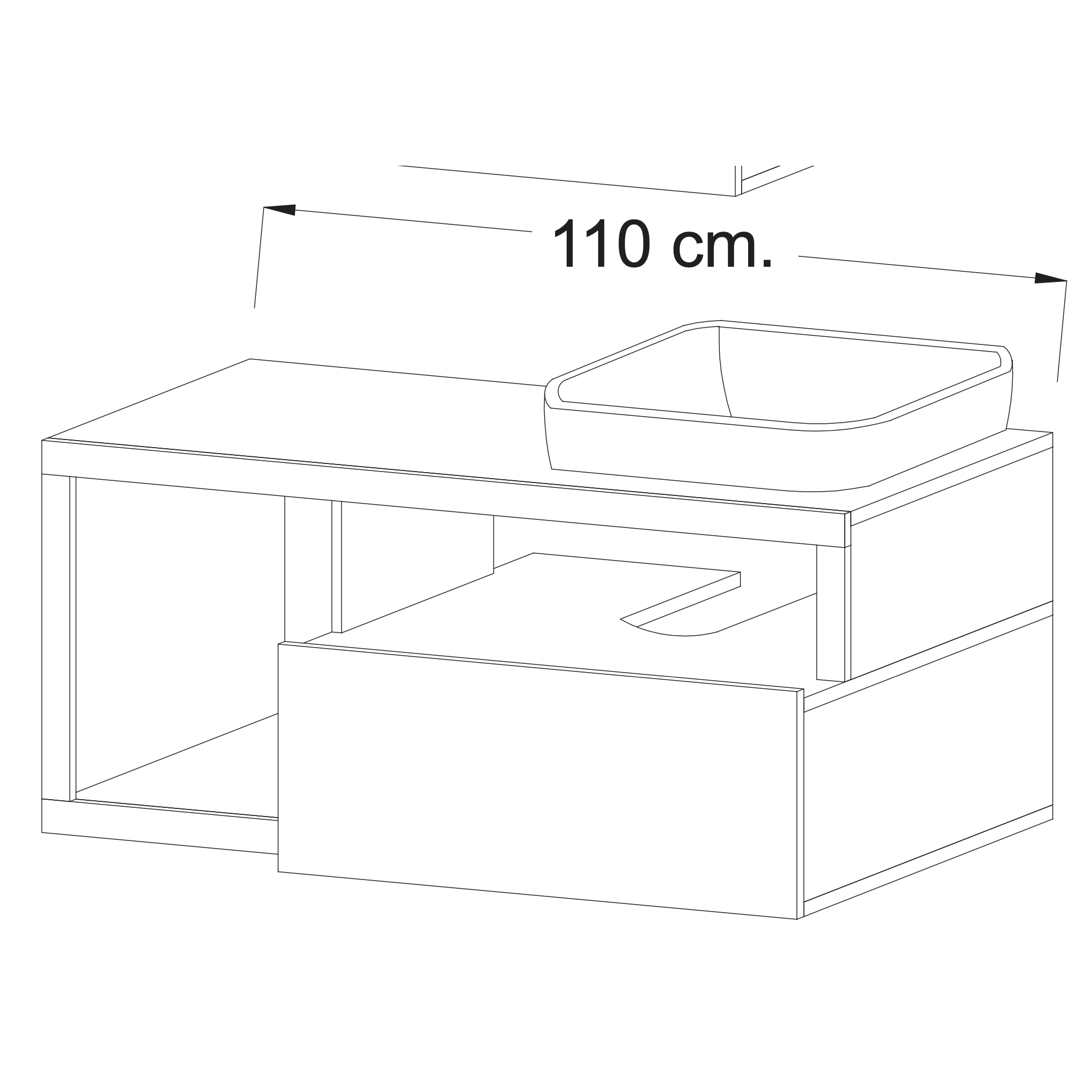 • Vanity Dimensions in cm: Width 110cm Height 47cm Depth 49cm