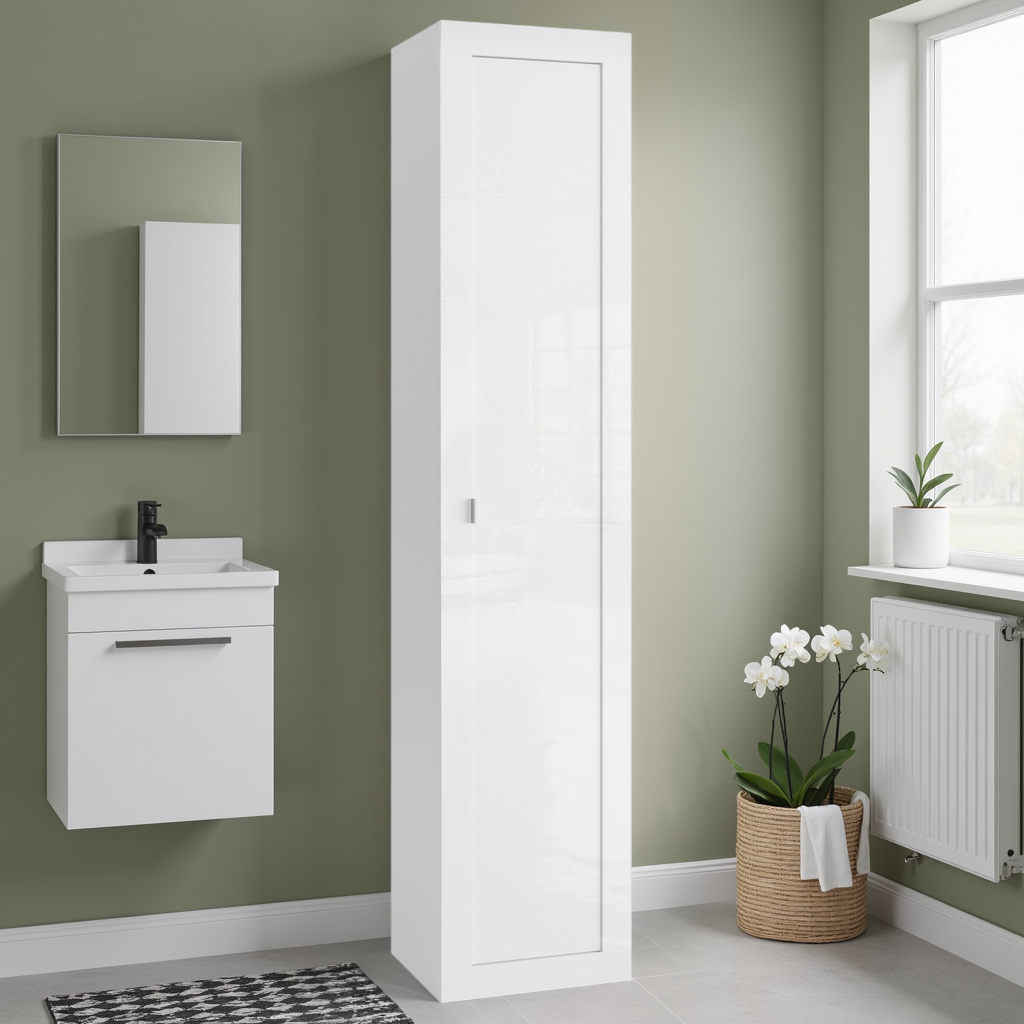 Selene 1 Door White Gloss Tall Bathroom Storage Cupboard
