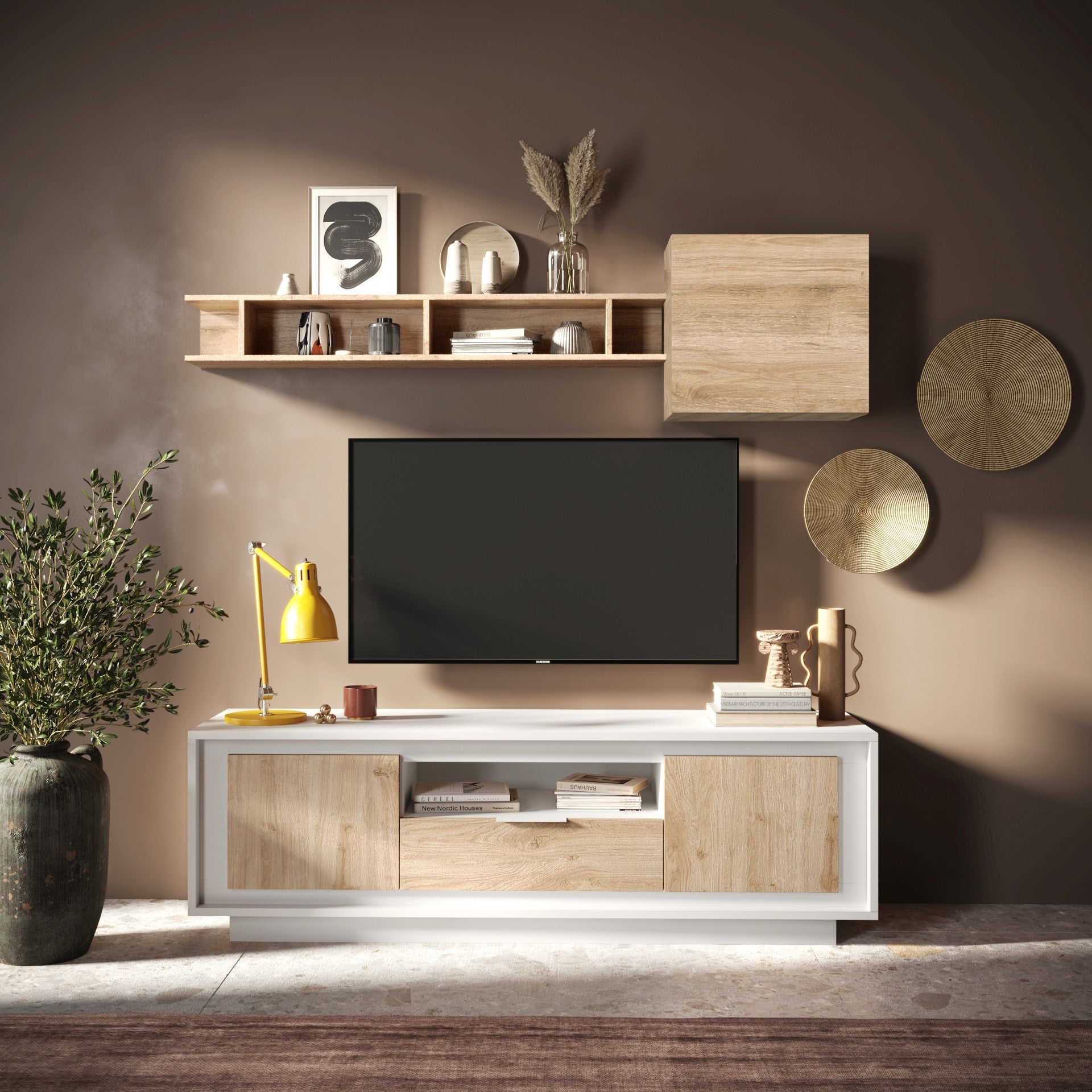 Berlin 2 Door 1 Drawer 180cm Matt White and Cadiz Oak Oak TV Stand