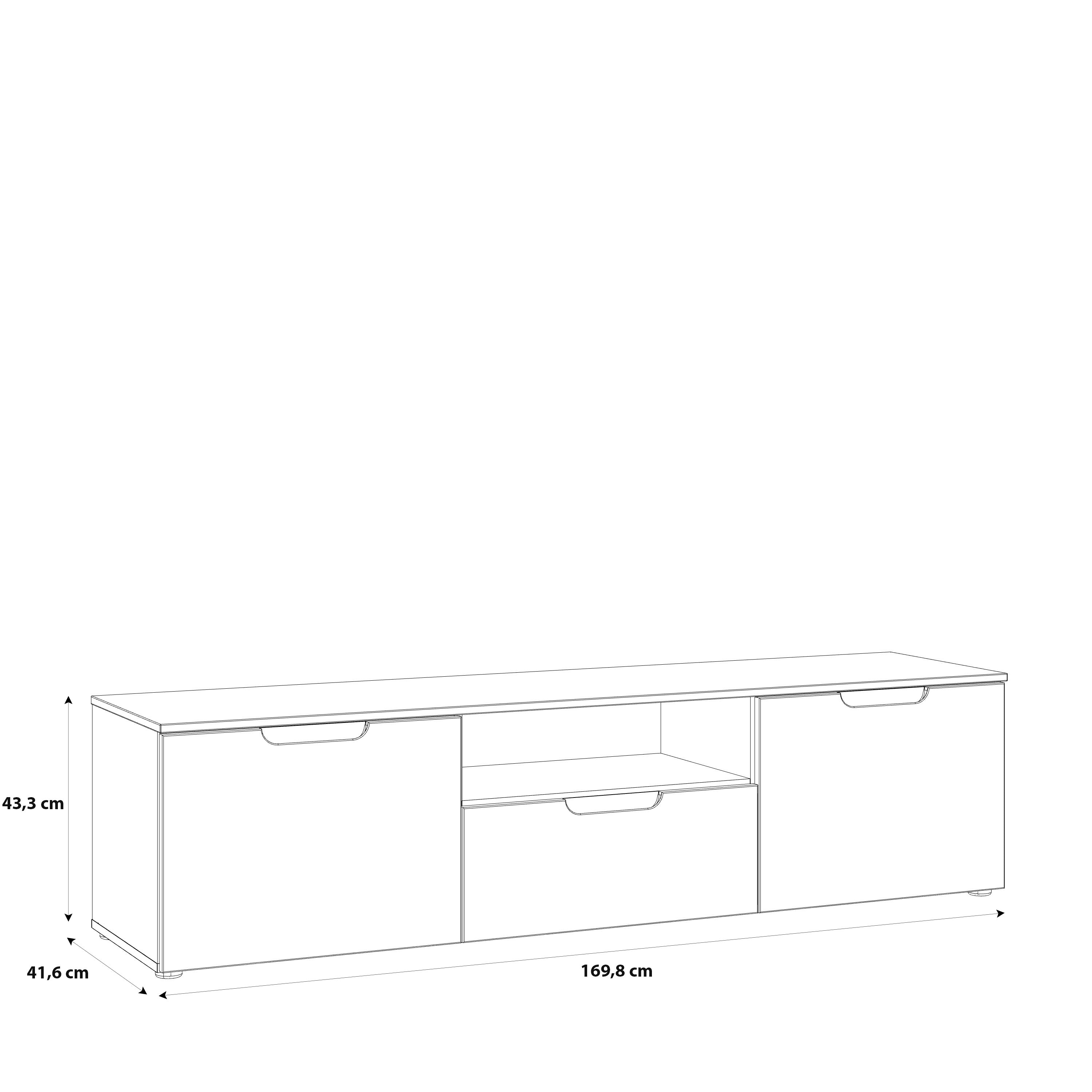 Glossy, modern and smooth. The Ella TV cabinet is the perfect modern take for your living room. Finished in a brilliant glossy white, this TV stand is what you need for your home. With an open shelf in the middle, for access to your games console or TV box. Ample surface area for a massive 75 inch TV, this white gloss tv cabinet leaves nothing to desire. With 2 hinged doors either side and a smooth sliding drawer below, there’s ample storage to stow away your things and keep everything neat and tidy. Finished with beautifully crafted notches that allow for easy access. All in a shiny high gloss white finish.