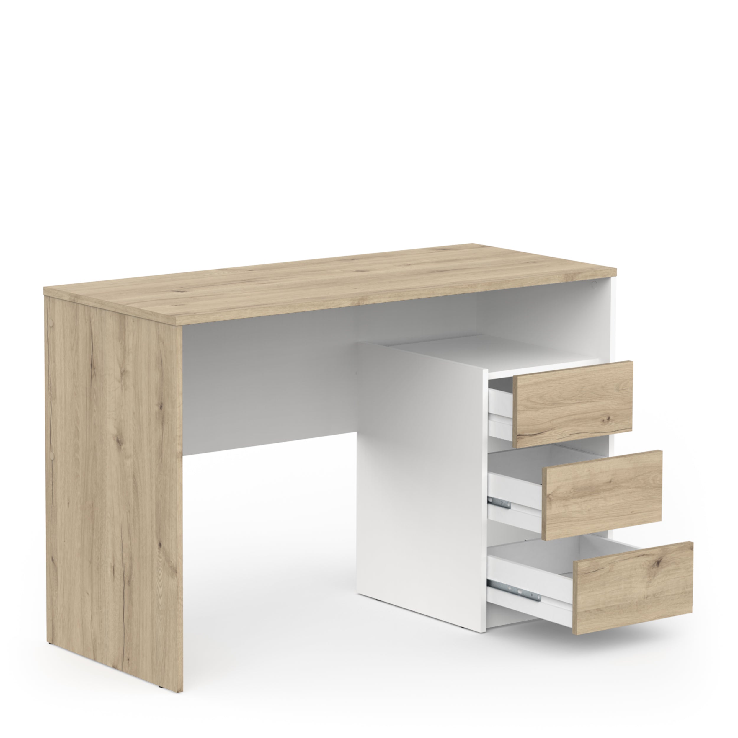 Key Features of Detroit 3 Drawer 117cm Matt White and Oak Office Desk: